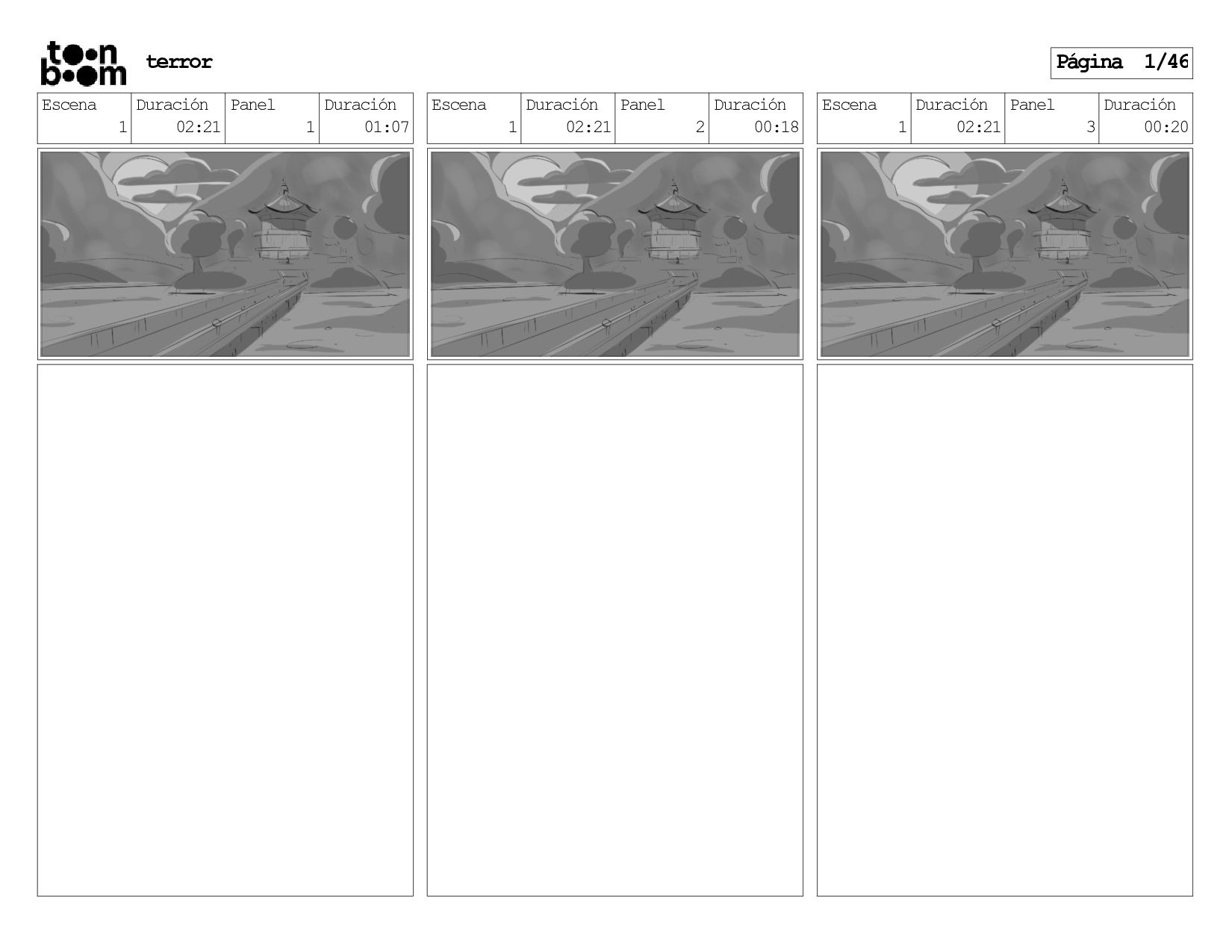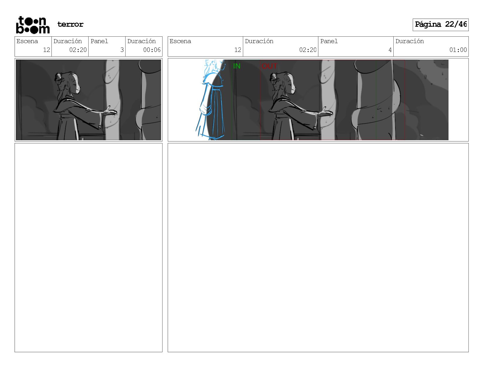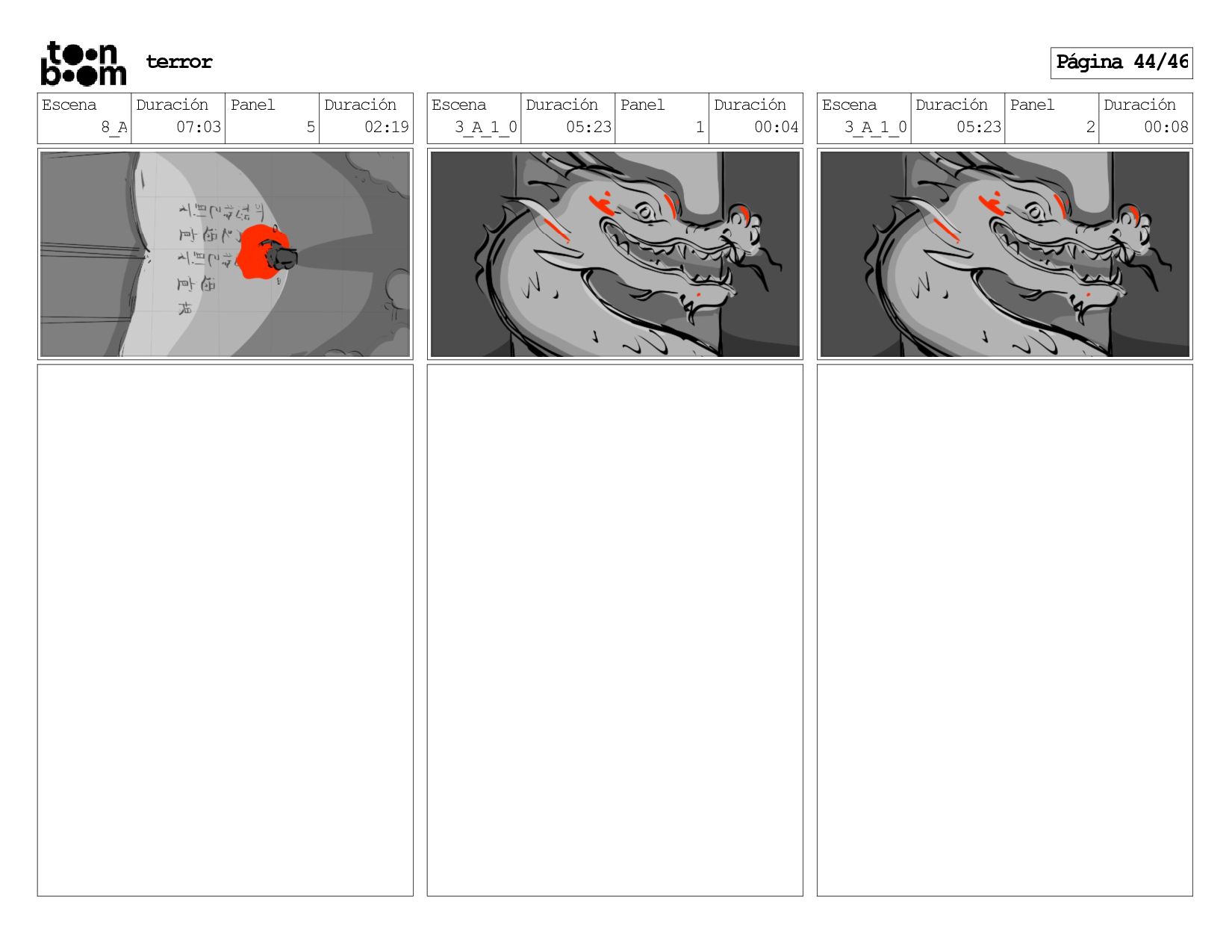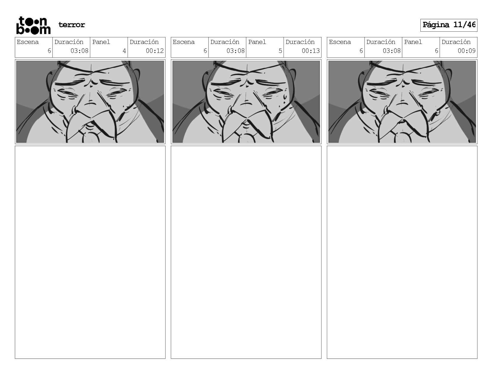 Duración 02:12 Panel 8 Duración 00:03 Escena 3_A Duración 02:12 Panel 9 Duración 00:07 terror Página 4/46