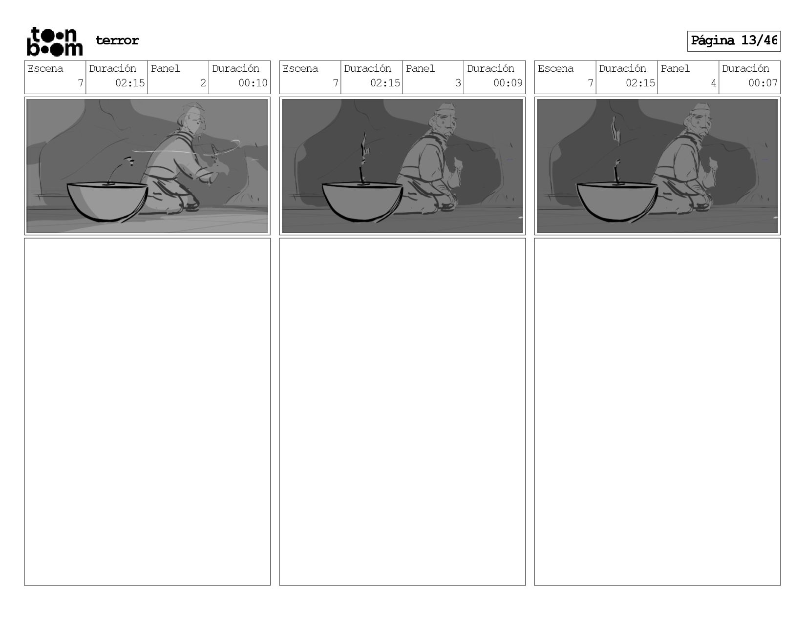 Duración 02:15 Panel 3 Duración 00:09 Escena 7 Duración 02:15 Panel 4 Duración 00:07 terror Página 13/46