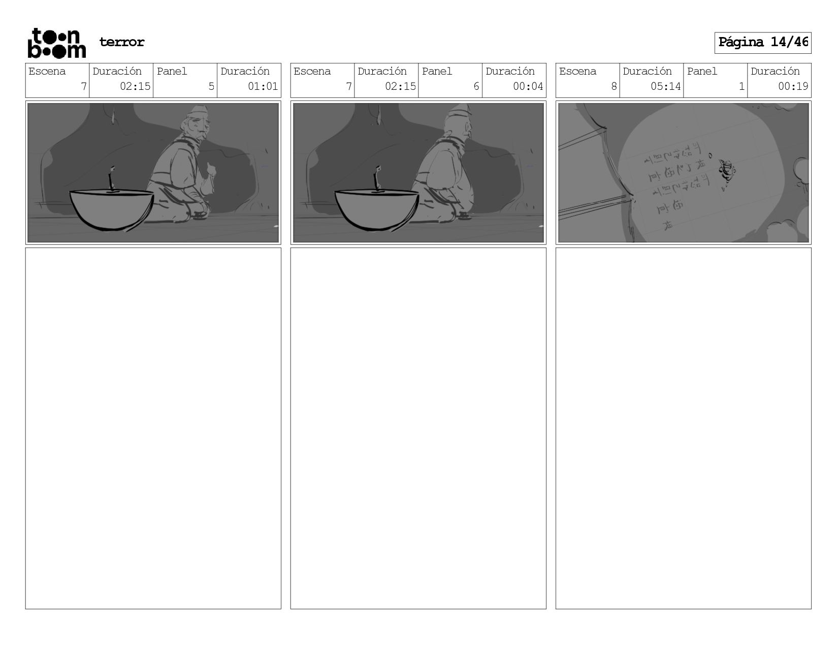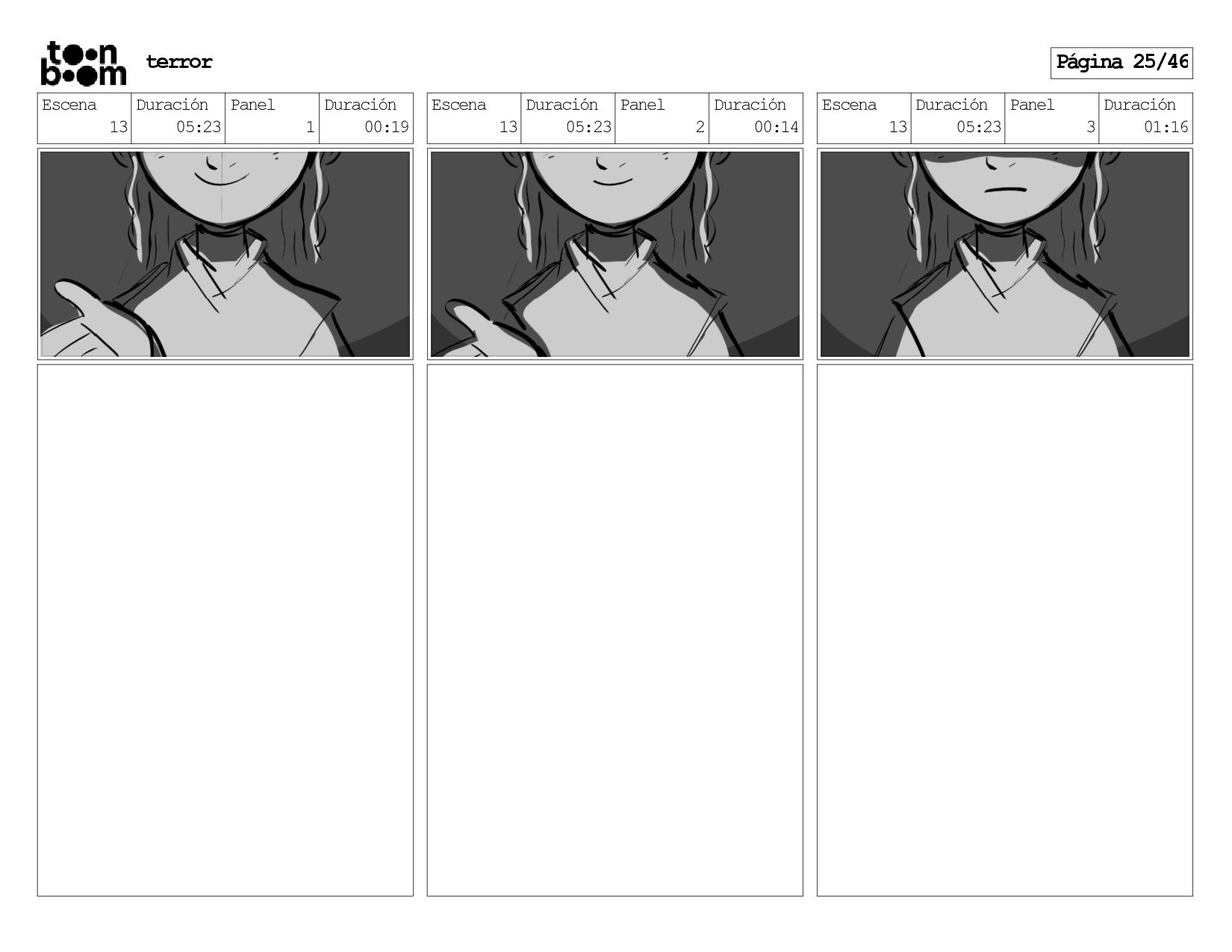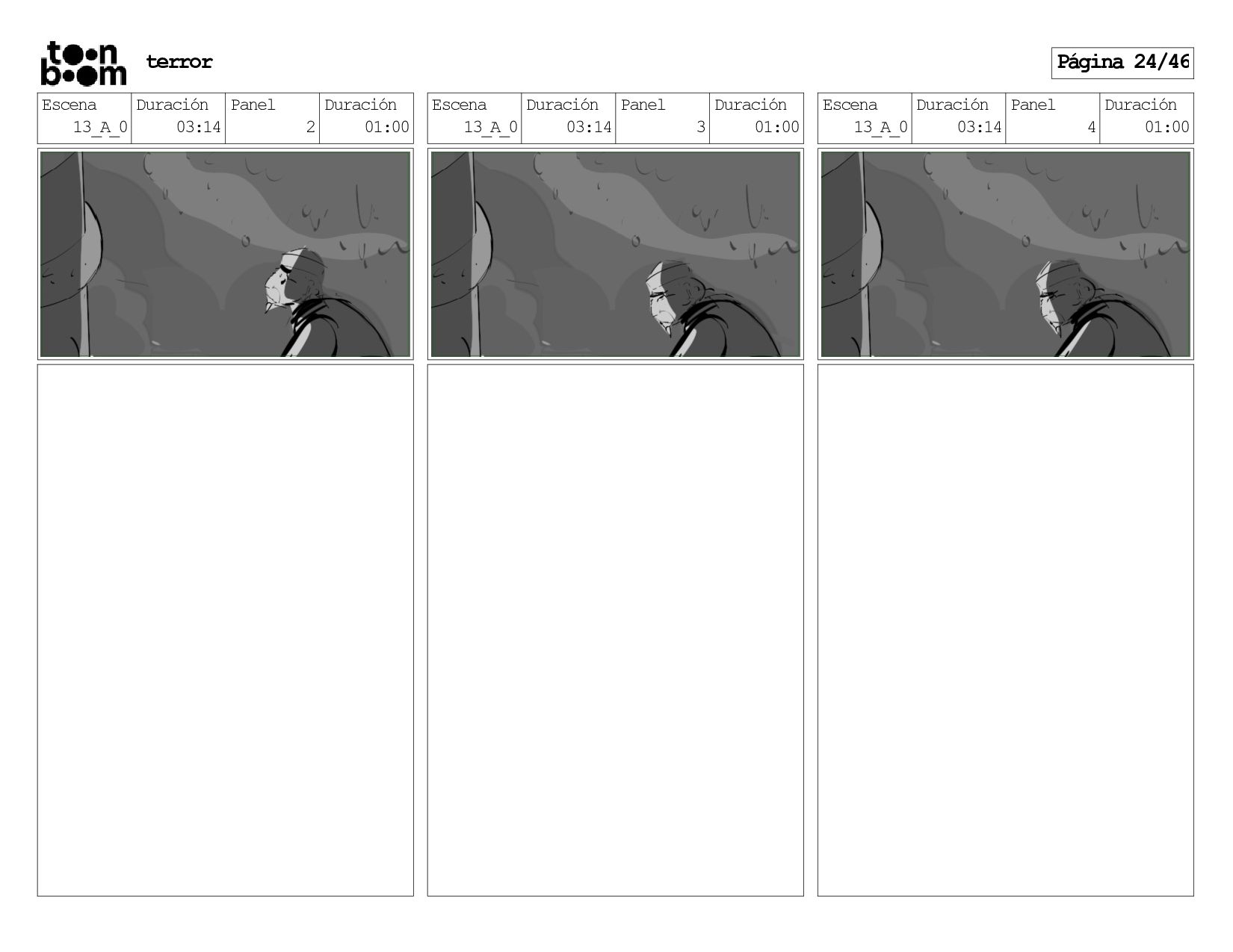 Duración 03:14 Panel 3 Duración 01:00 Escena 13_A_0 Duración 03:14 Panel 4 Duración 01:00 terror Página 24/46