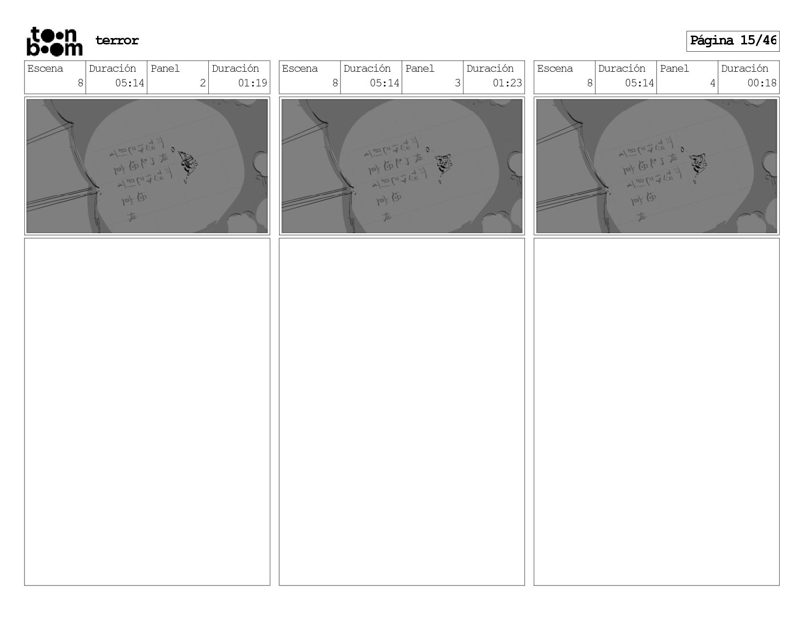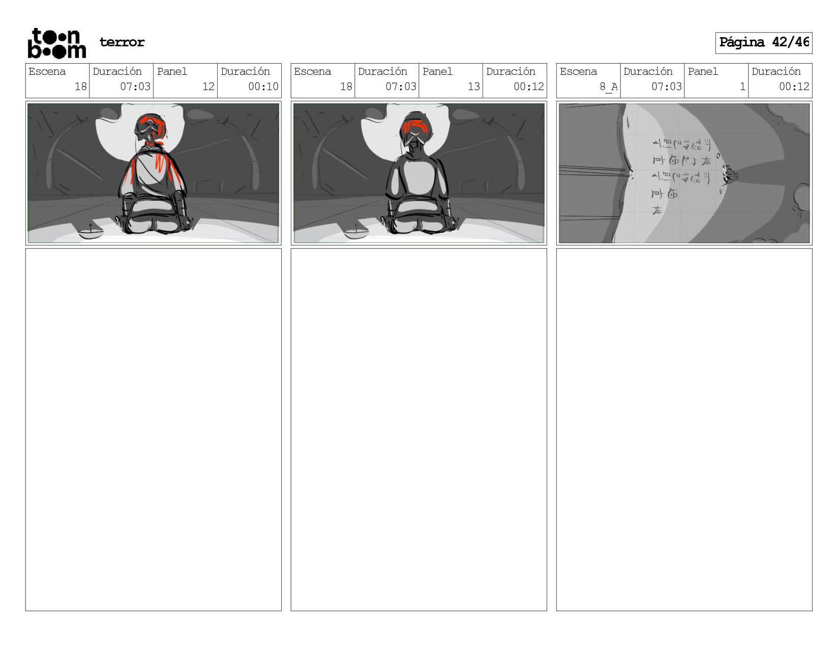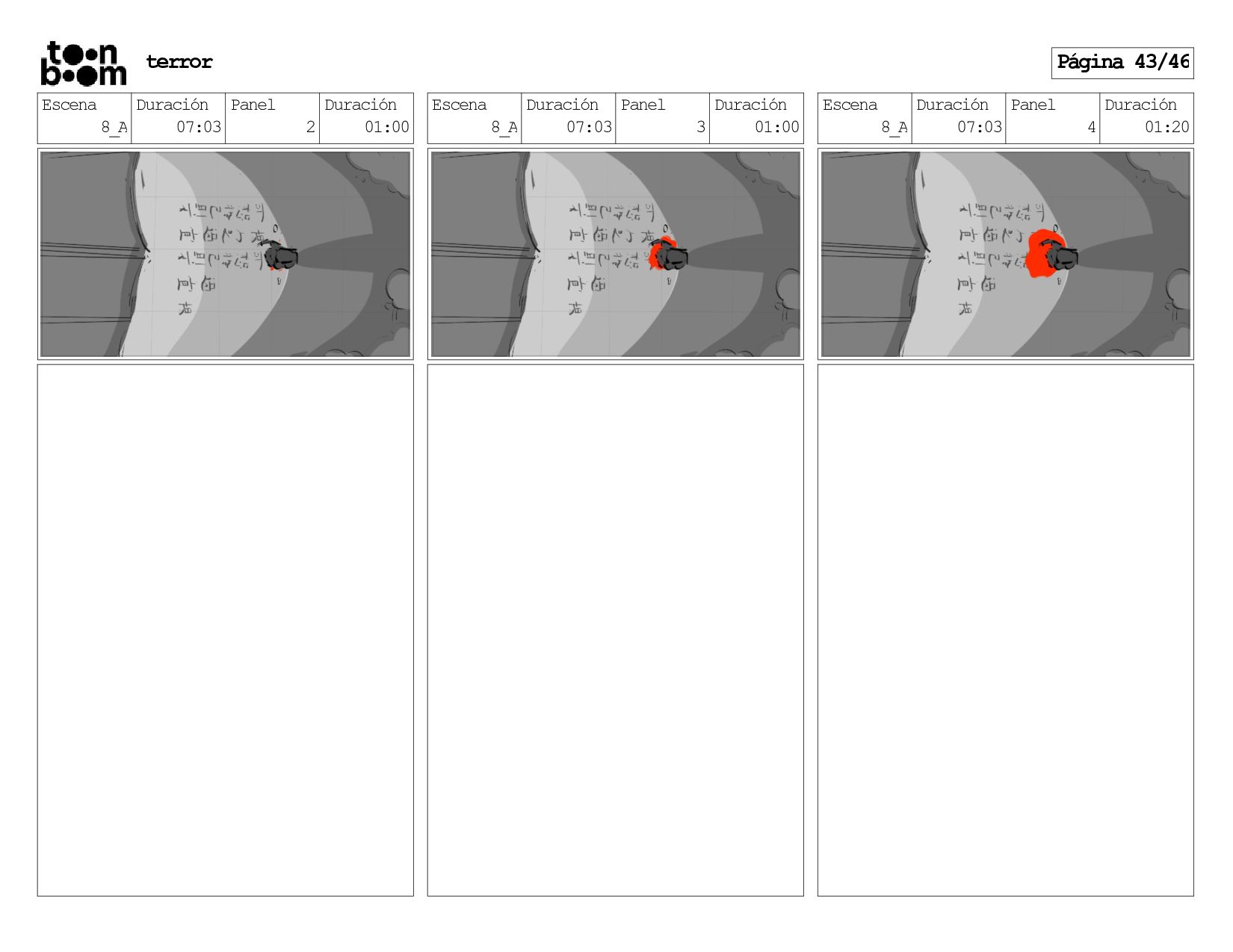Duración 07:03 Panel 3 Duración 01:00 Escena 8_A Duración 07:03 Panel 4 Duración 01:20 terror Página 43/46