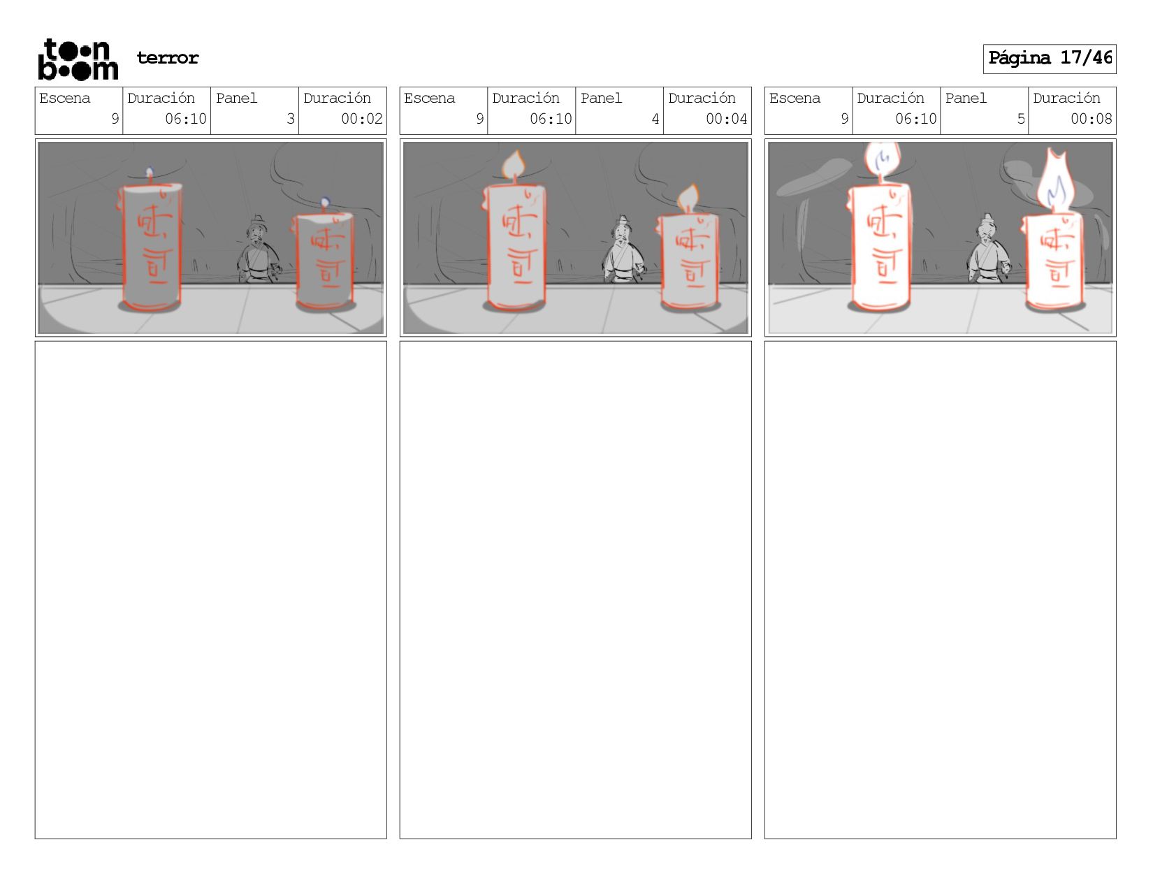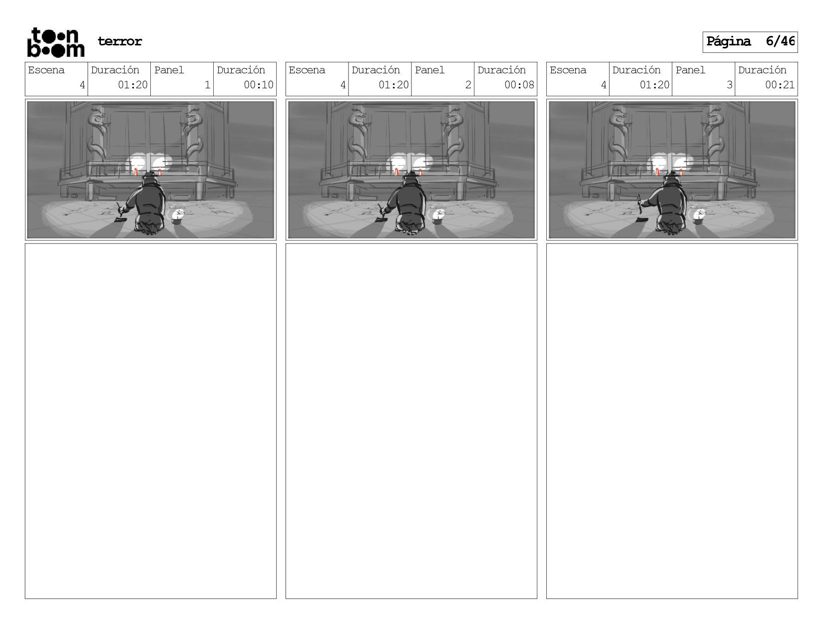 Duración 06:10 Panel 4 Duración 00:04 Escena 9 Duración 06:10 Panel 5 Duración 00:08 terror Página 17/46