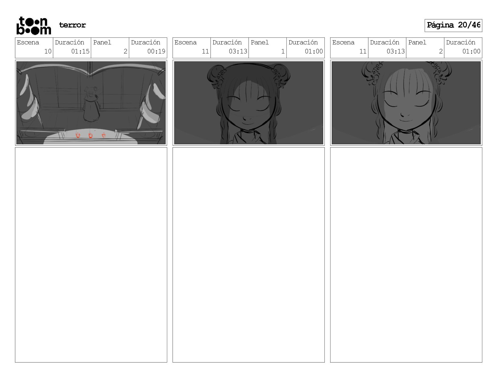 Duración 03:13 Panel 1 Duración 01:00 Escena 11 Duración 03:13 Panel 2 Duración 01:00 terror Página 20/46