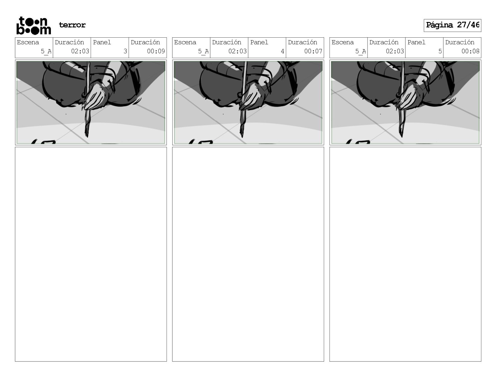 Duración 02:03 Panel 4 Duración 00:07 Escena 5_A Duración 02:03 Panel 5 Duración 00:08 terror Página 27/46