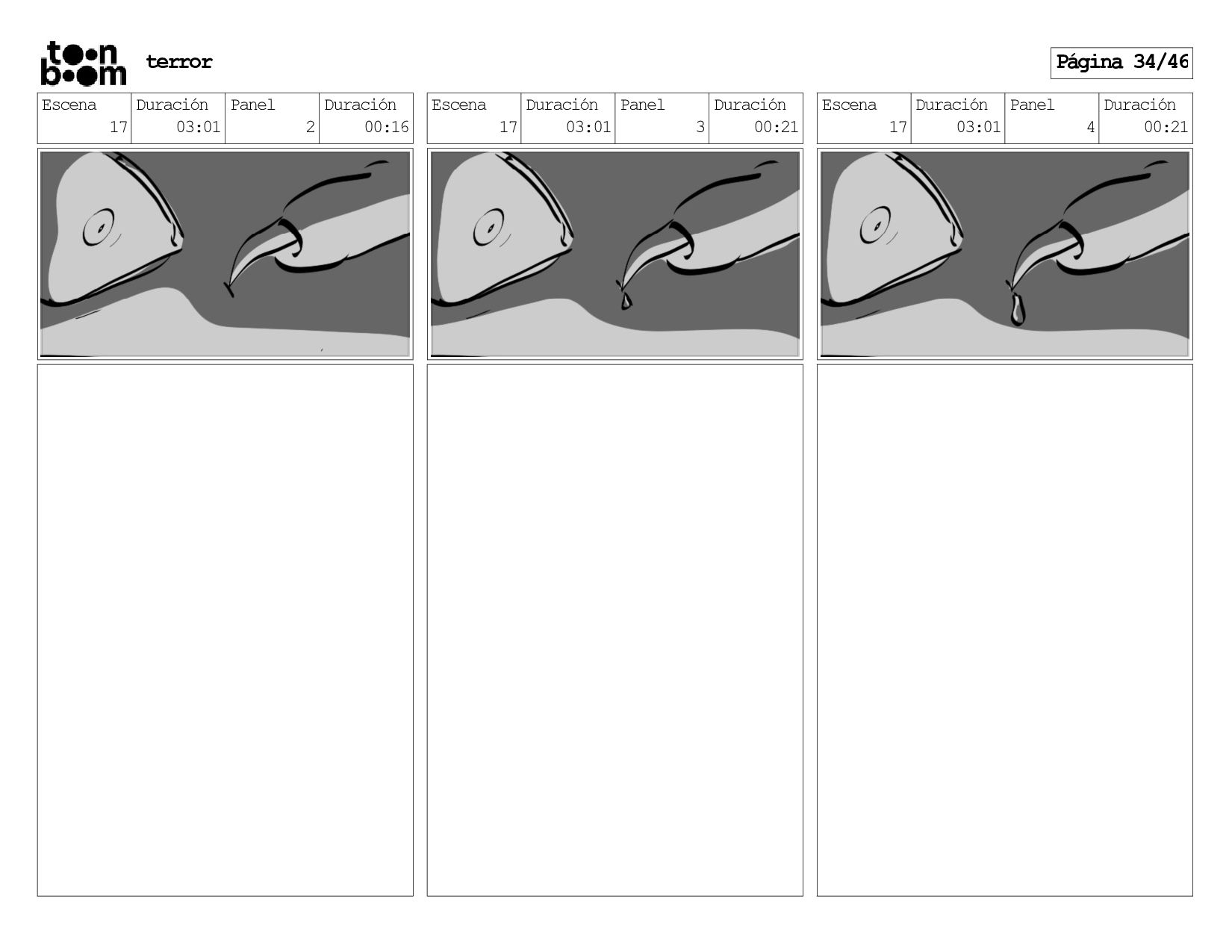 Duración 03:01 Panel 3 Duración 00:21 Escena 17 Duración 03:01 Panel 4 Duración 00:21 terror Página 34/46