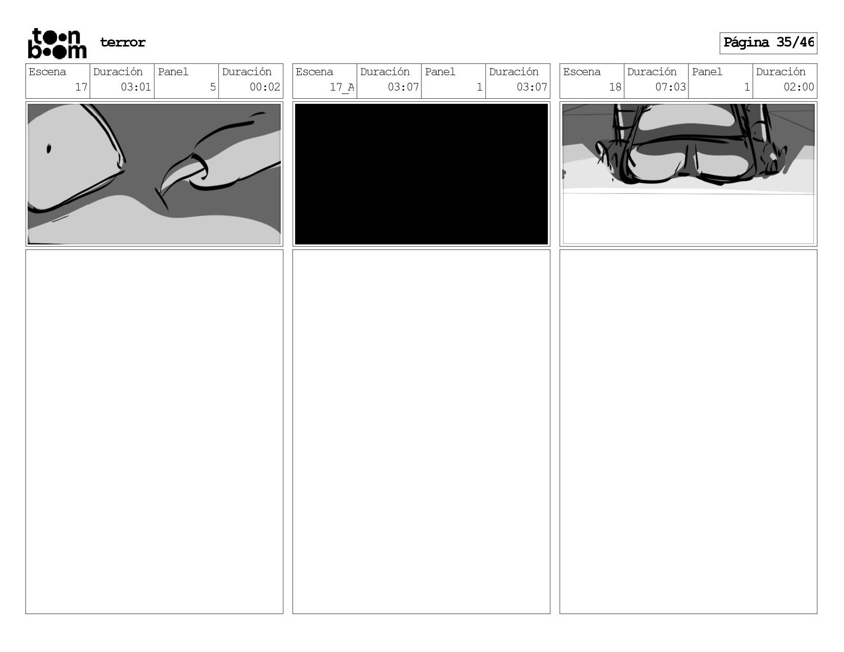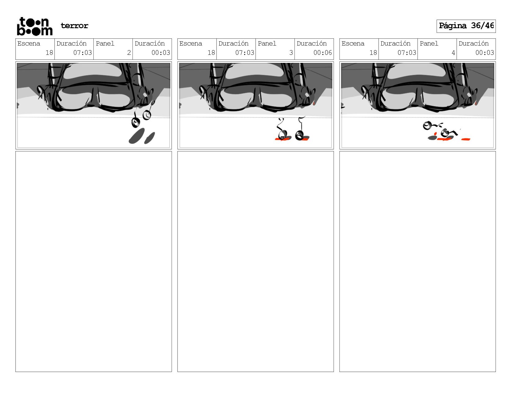 Duración 07:03 Panel 3 Duración 00:06 Escena 18 Duración 07:03 Panel 4 Duración 00:03 terror Página 36/46