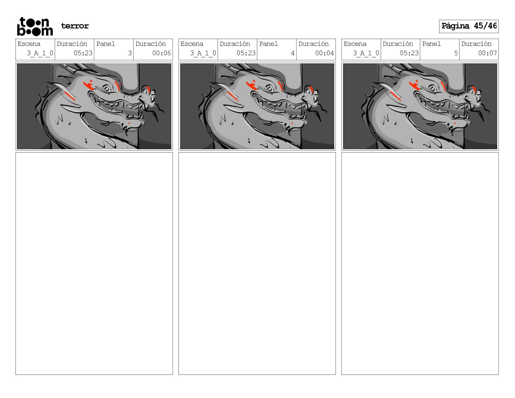Duración 05:23 Panel 4 Duración 00:04 Escena 3_A_1_0 Duración 05:23 Panel 5 Duración 00:07 terror Página 45/46