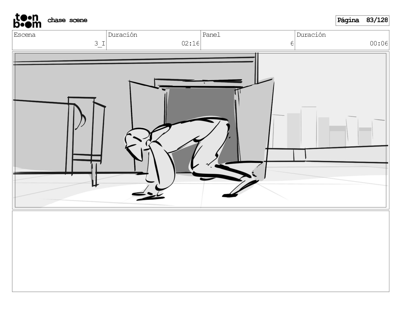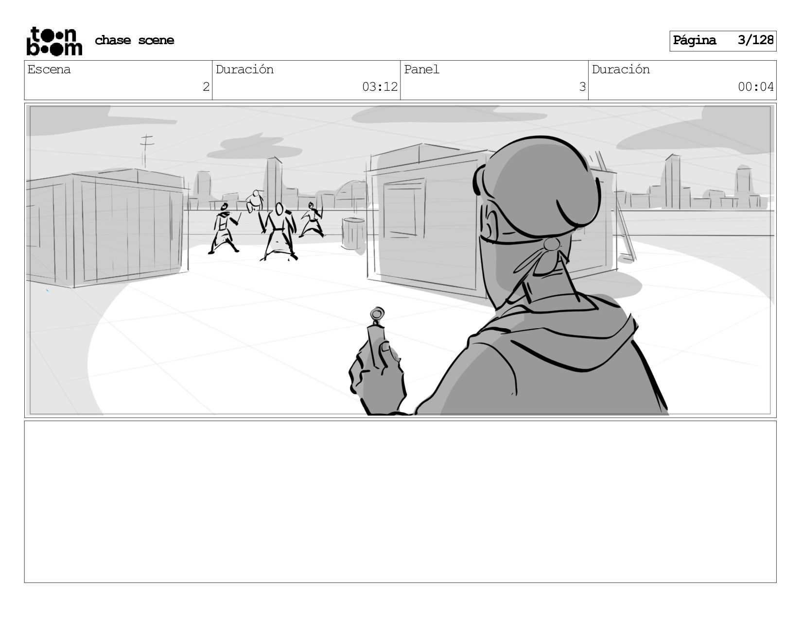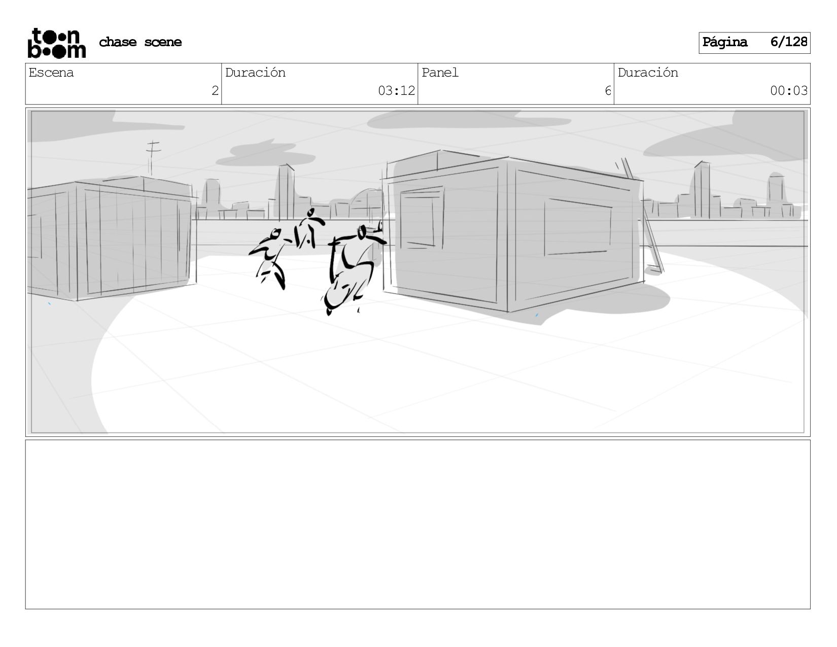 Escena 2 Duración 03:12 Panel 6 Duración 00:03 chase scene