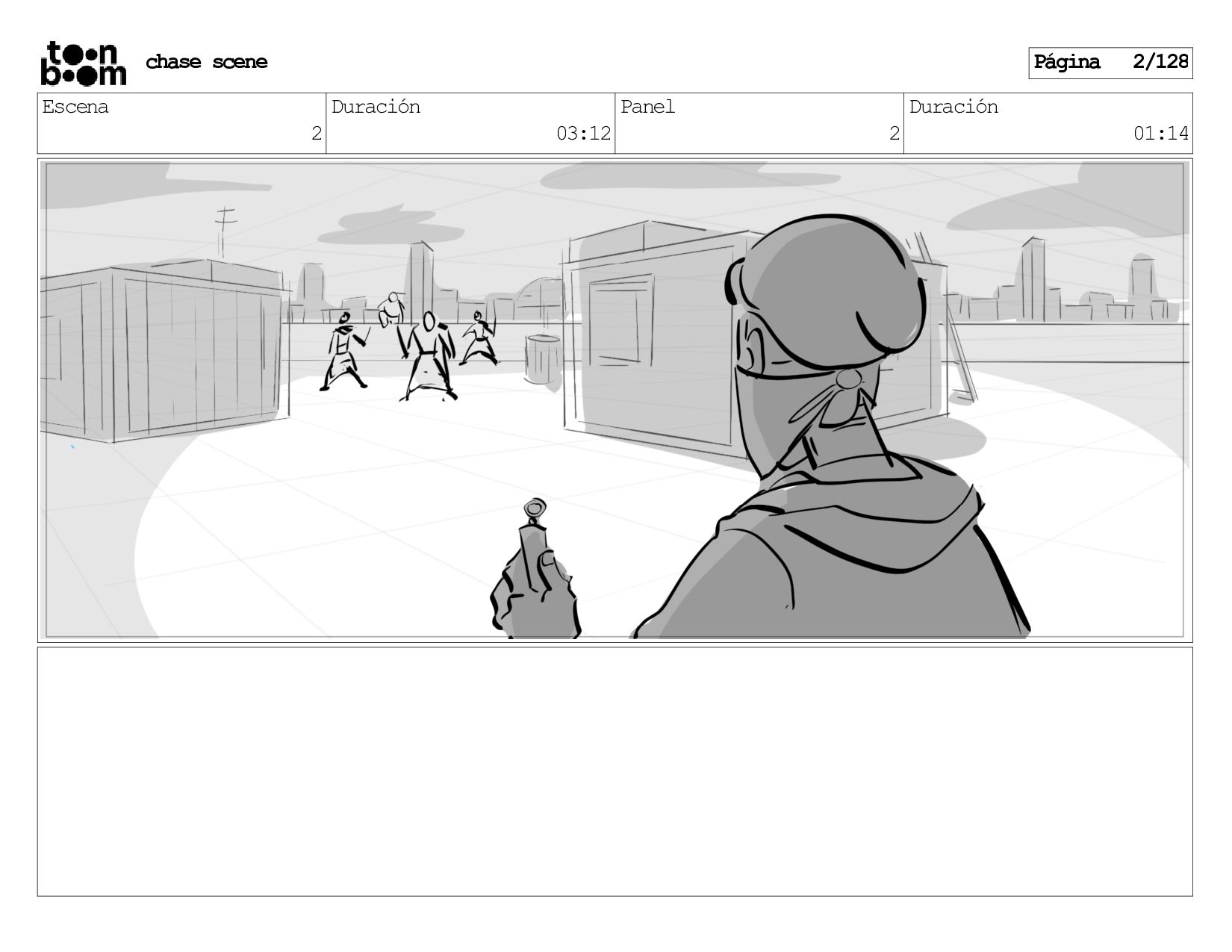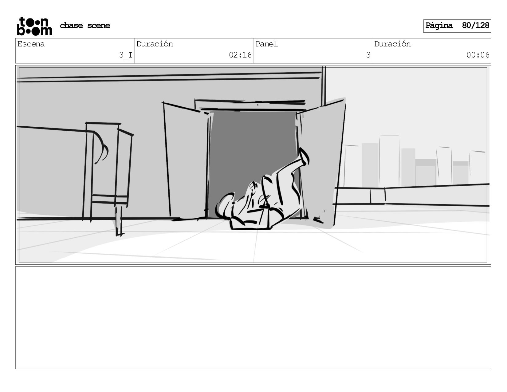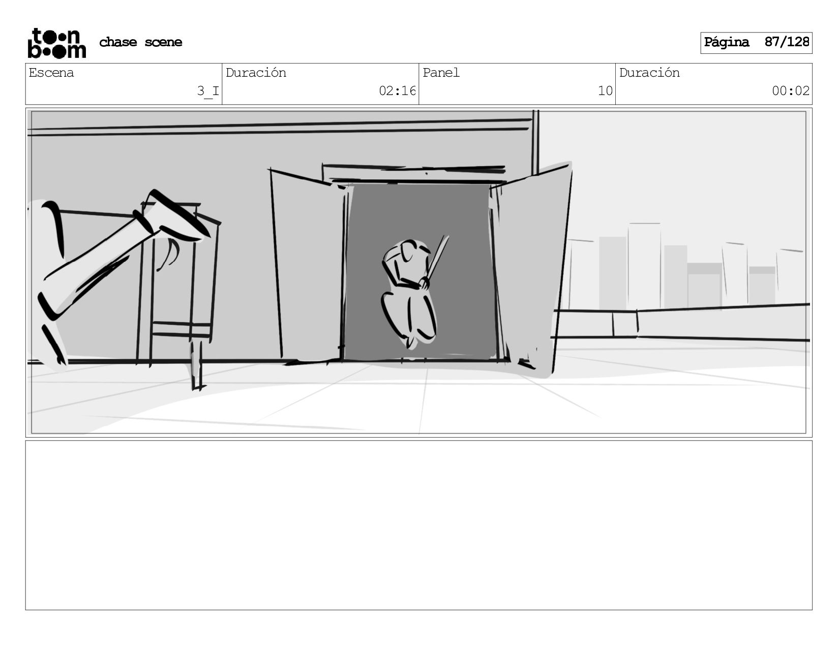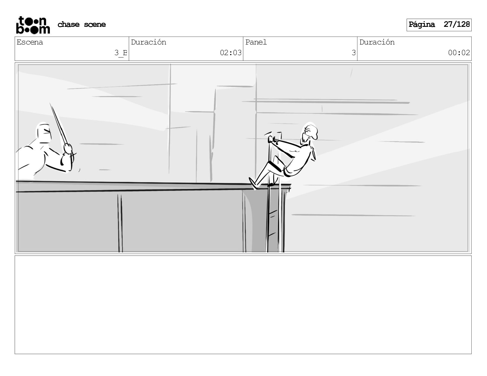 Escena 2 Duración 03:12 Panel 6 Duración 00:03 chase scene