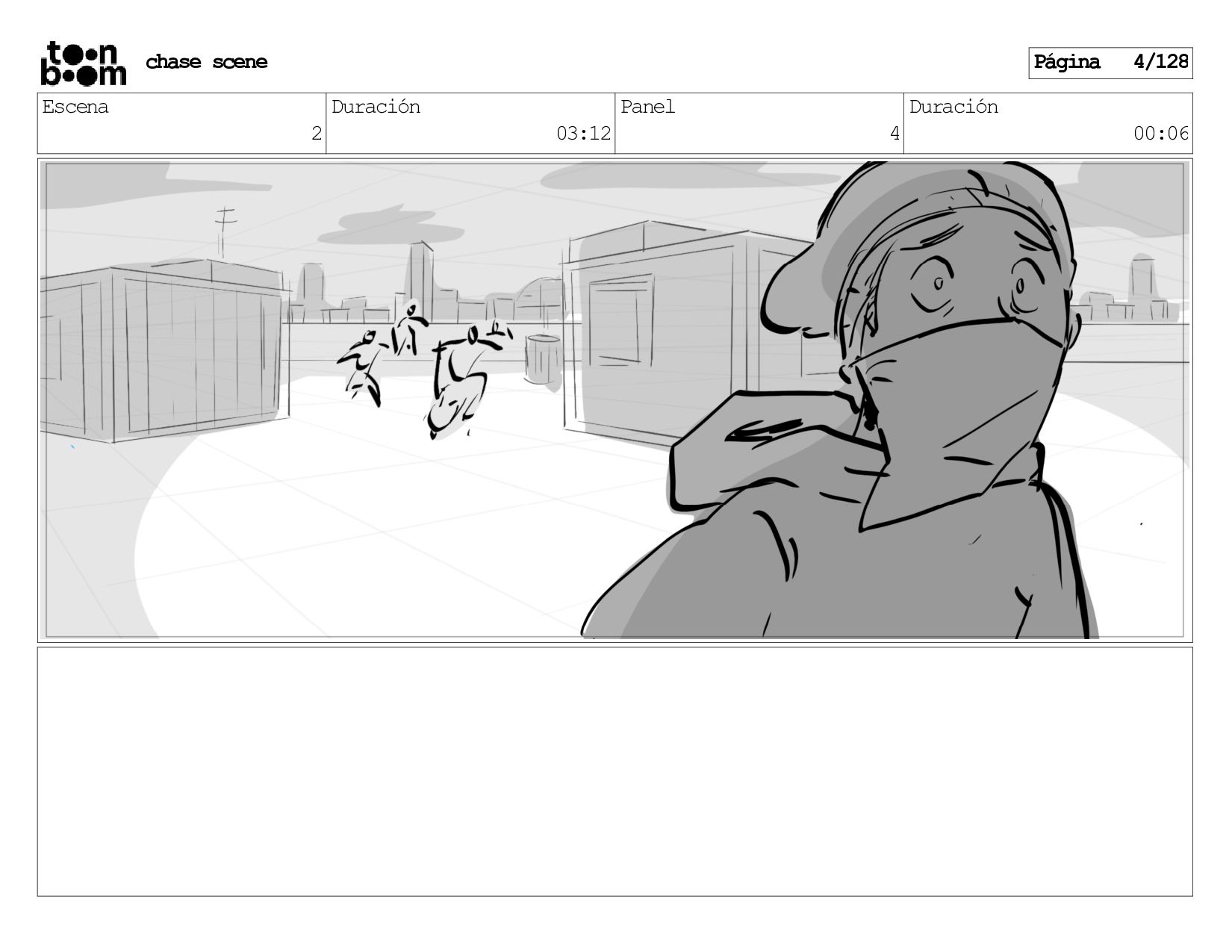 Escena 2 Duración 03:12 Panel 3 Duración 00:04 chase scene