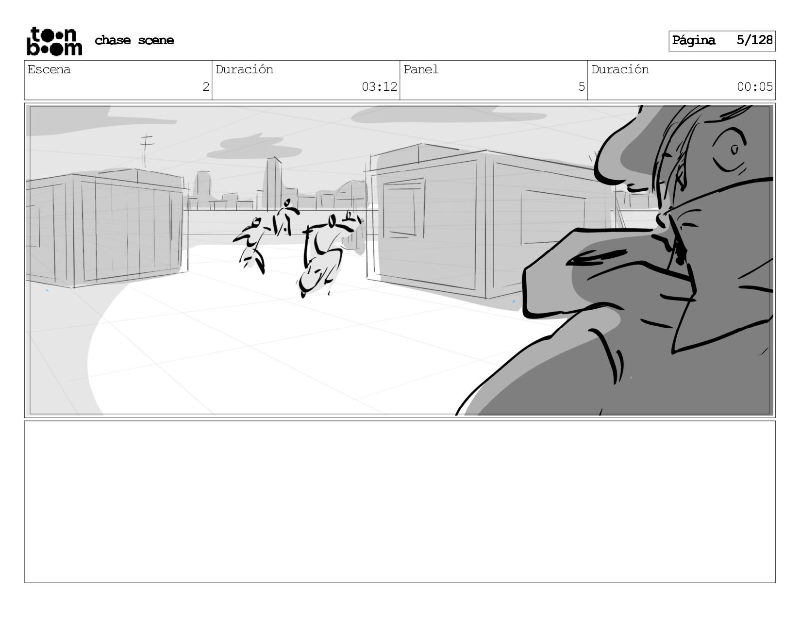 Escena 2 Duración 03:12 Panel 5 Duración 00:05 chase scene