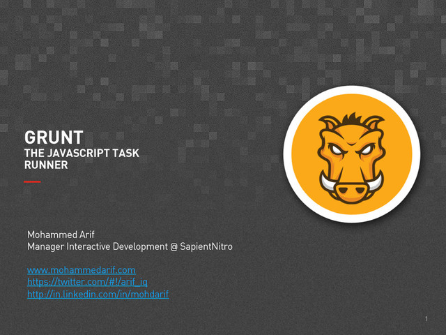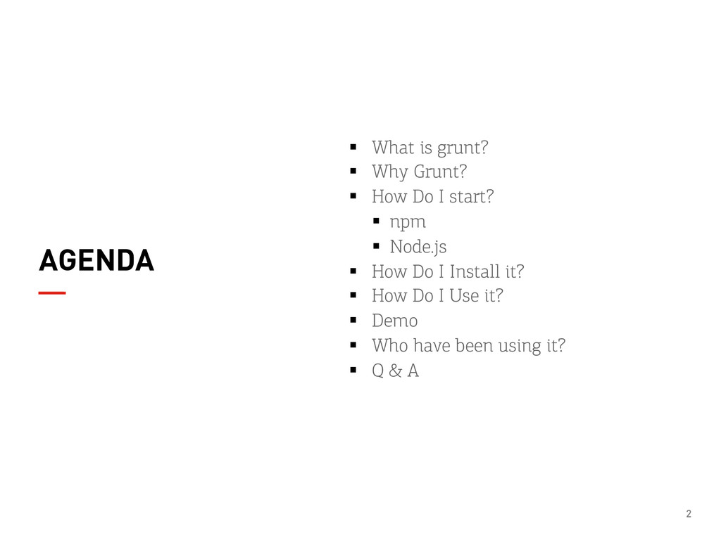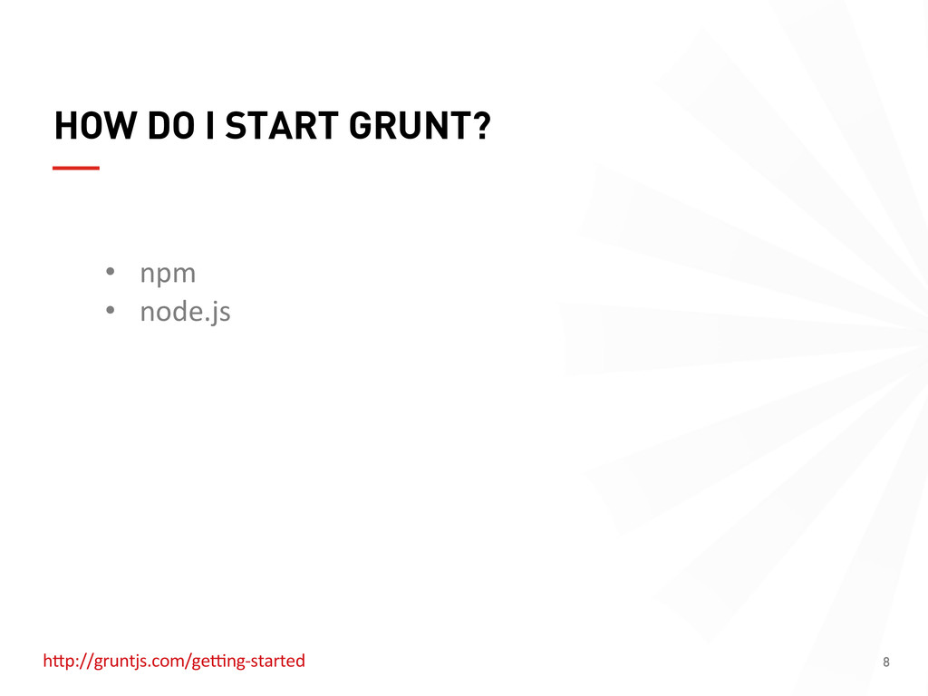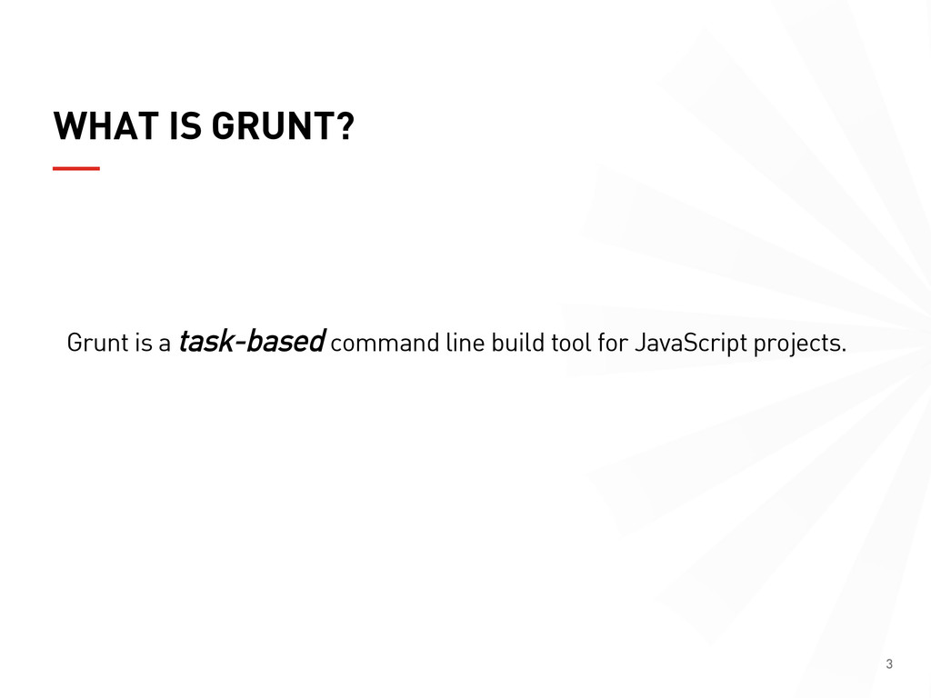 install -g grunt-cli This will put the grunt command in your system path, allowing it to be run from any directory. * Note that installing grunt-cli does not install the grunt task runner! You need to install Grunt's command line interface (CLI) globally.
