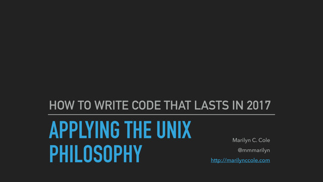 programs that do one thing and do it well. ▸ Write programs to work together. ▸ Write programs to handle text streams, because that is a universal interface. —Peter H. Salus