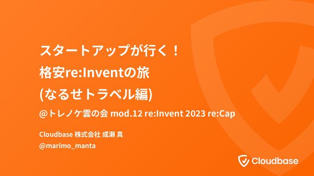 スタートアップが⾏く! 格安re:Inventの旅 (なるせトラベル編) @トレノケ雲の会 mod.12 re:Invent 2023 re:Cap Cloudbase 株式会社