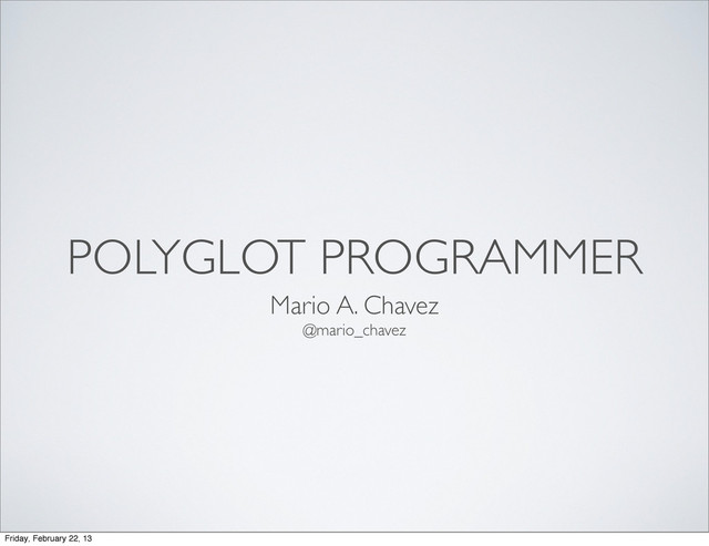 POLYGLOT PROGRAMMER Mario A. Chavez @mario_chavez Friday, February 22, 13