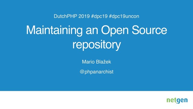 Maintaining an Open Source repository @phpanarchist DutchPHP 2019 #dpc19 #dpc19uncon