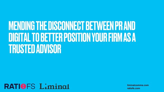 We will showcase a practical approach to integrating PR and digital to amplify, reinforce and grow your firm’s brand and trusted advisor status.