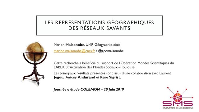 Cette présentation a été réalisée lors de la journée d'étude du programme de recherche ANR Colemon qui s'est tenue à Paris le 20 juin 2019.