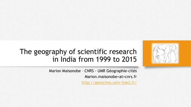 This slideshow is the support presented on the occasion of this event. It focuses on the geography of scientific production in India.
