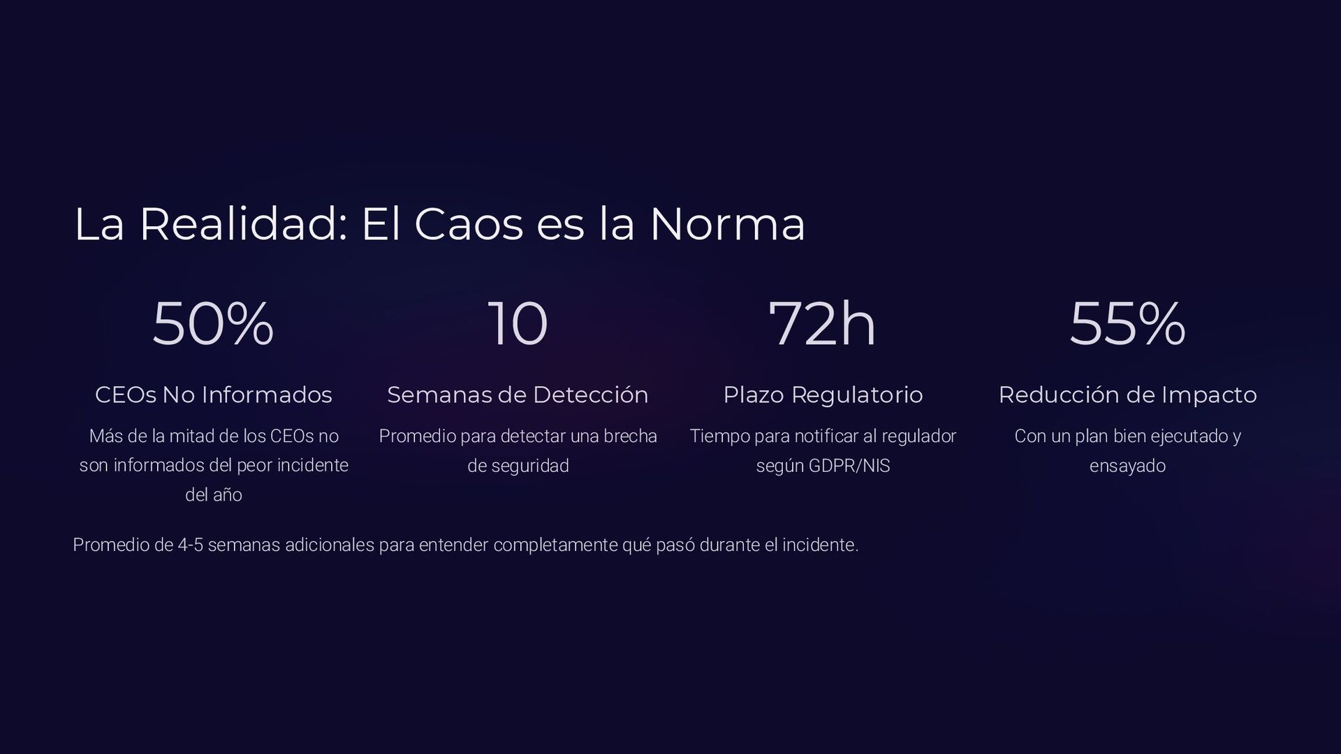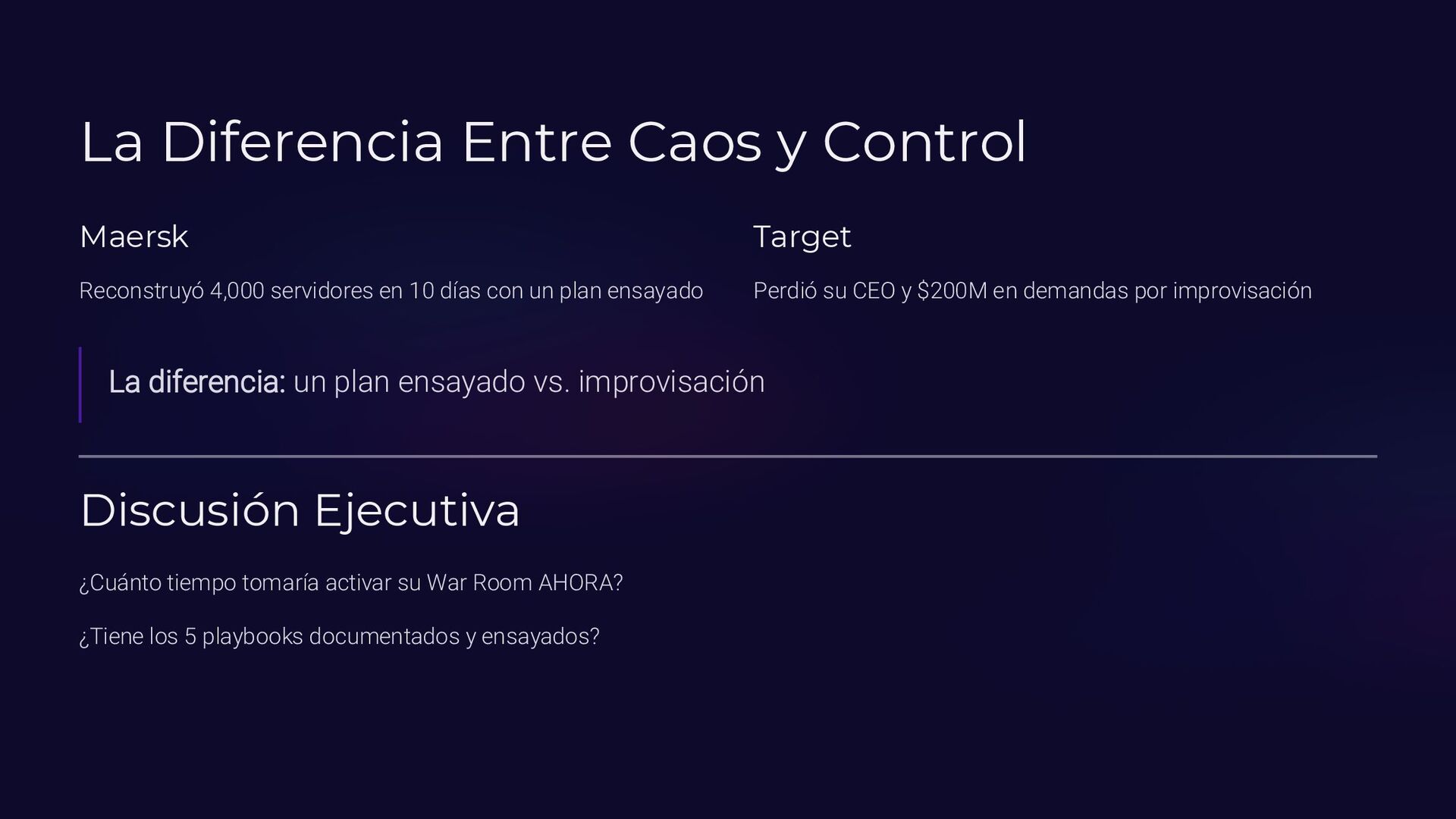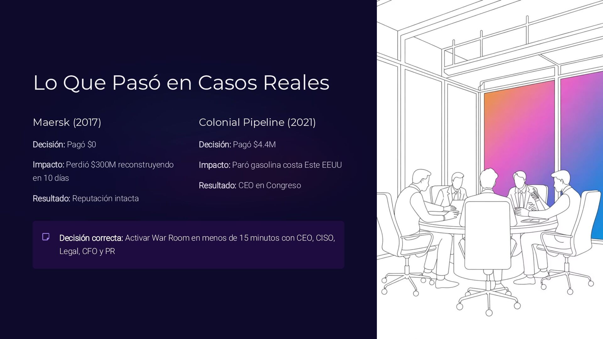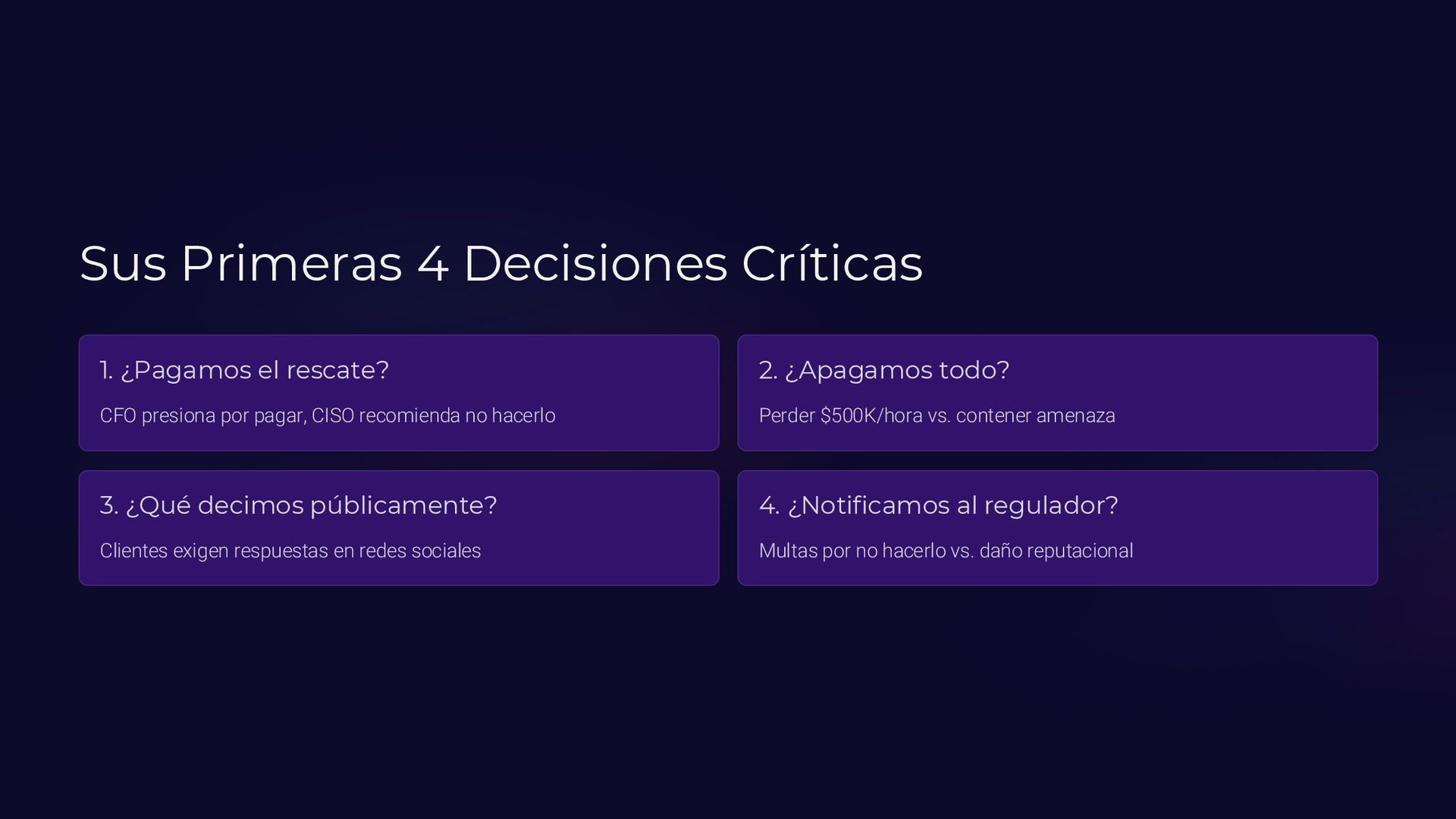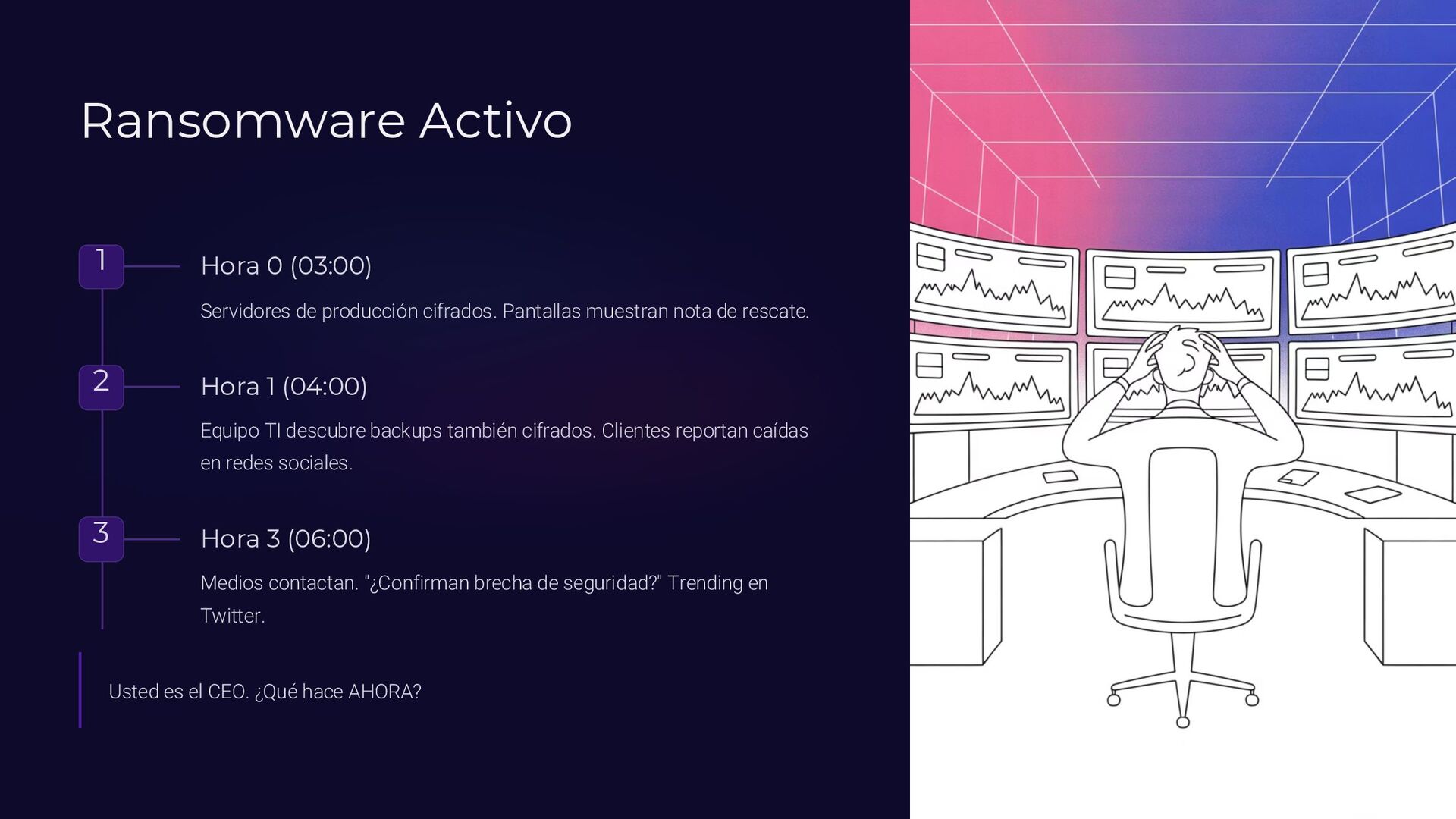 Insider, Cloud, Proveedor 2 TTPs (MITRE ATT&CK) Tácticas y técnicas del atacante documentadas 3 Indicadores de activación Logs SIEM, alertas EDR, reportes usuarios 4 Controles preventivos EDR, backups offline, MFA, DLP, segmentación 5 Acciones inmediatas Timeline minuto a minuto con responsables asignados 6 Evidencia forense Memoria (Volatility), logs, CloudTrail, tráfico de red 7 Normativa aplicable ISO 27035, NIST 800-61, ENS, GDPR