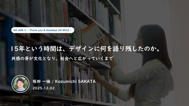 「UX JAM ∞ - Thank you & Goodbye UX MILK -」に登壇したときの資料です。