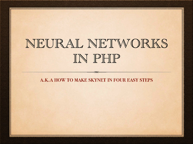 of examples. Example: PHP files grouped by ‘infected' and ‘clean’. 2. Write a function that converts your examples to something the Neural Network understands: a list of numbers (vector) per example. This is your dataset.