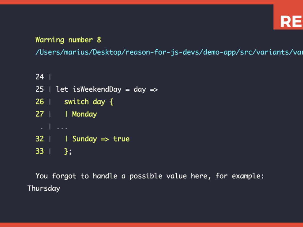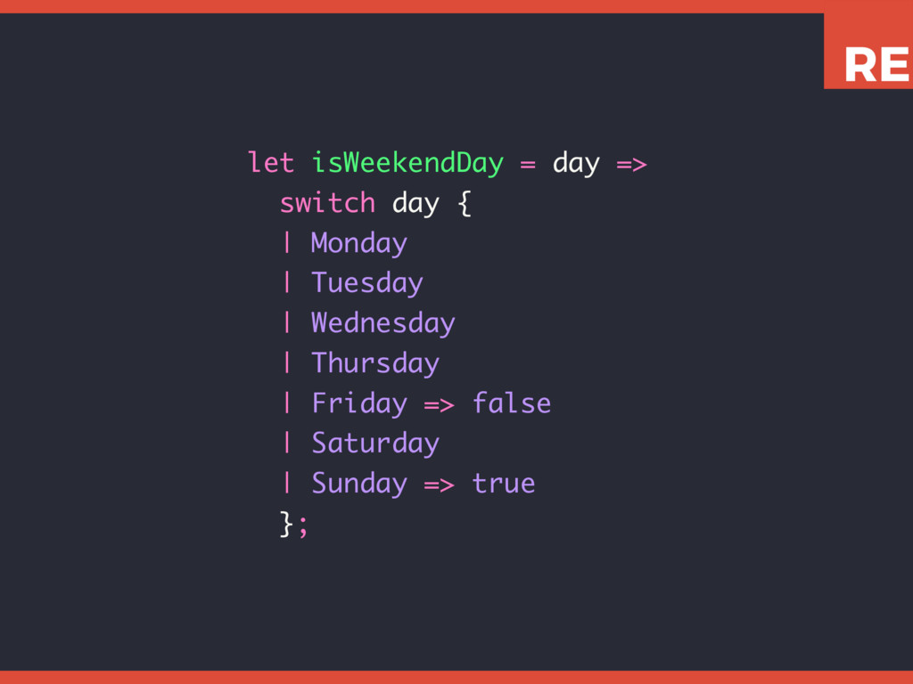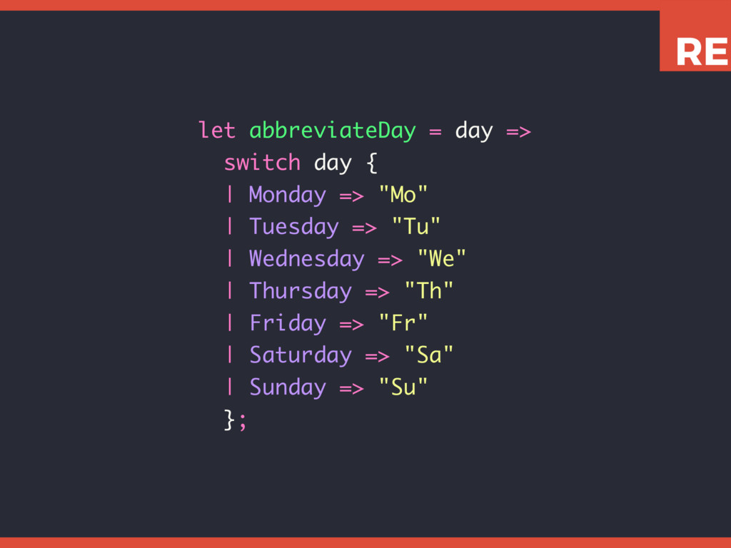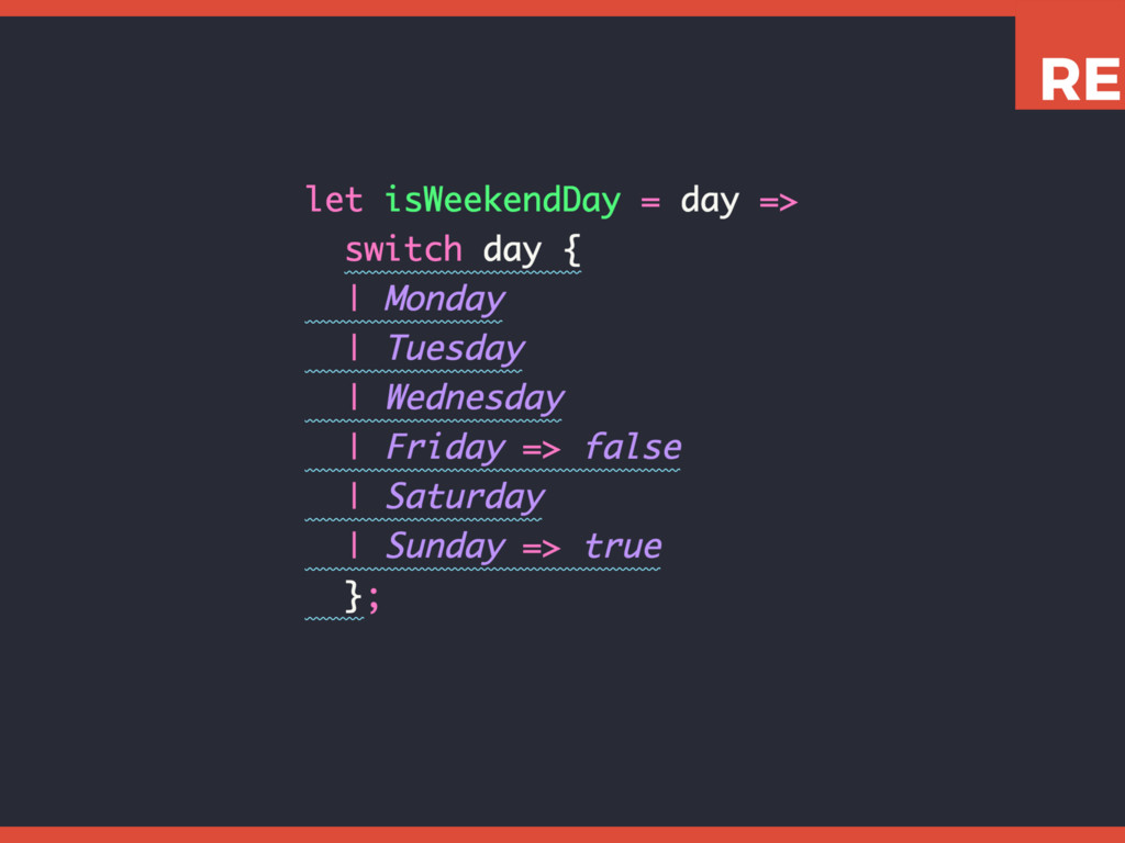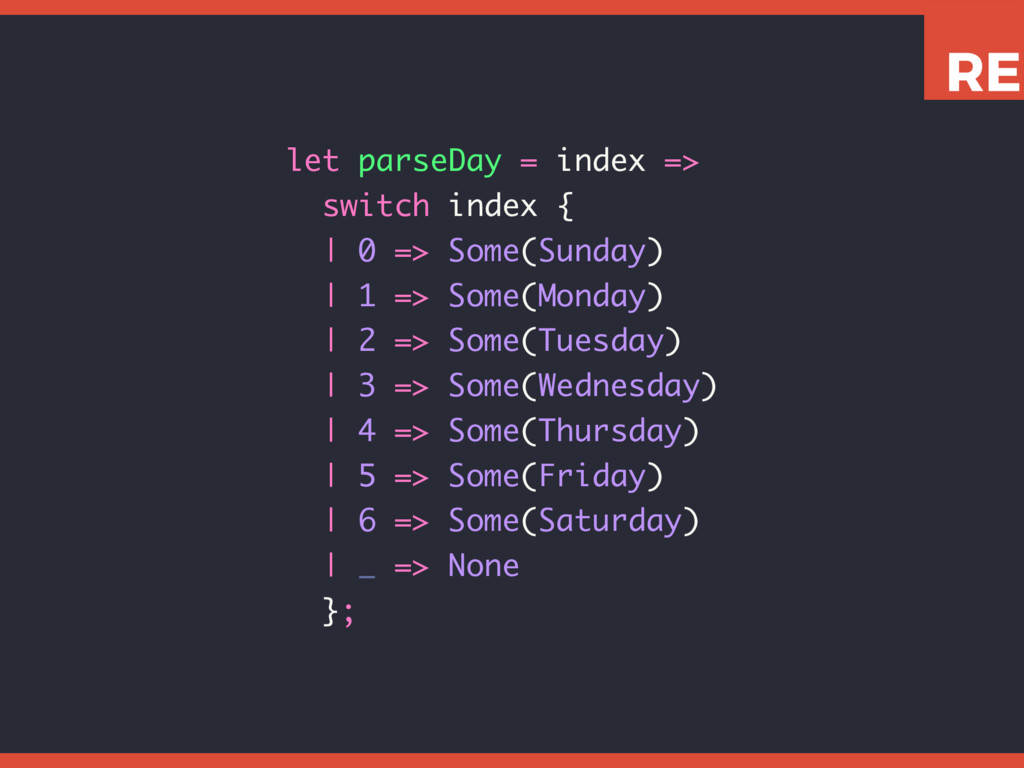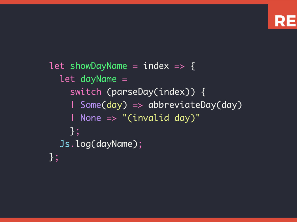 This slide set shows how to leverage various Reason features like tuples, variants, and pattern matching to write expressive, concise, and type-safe code.