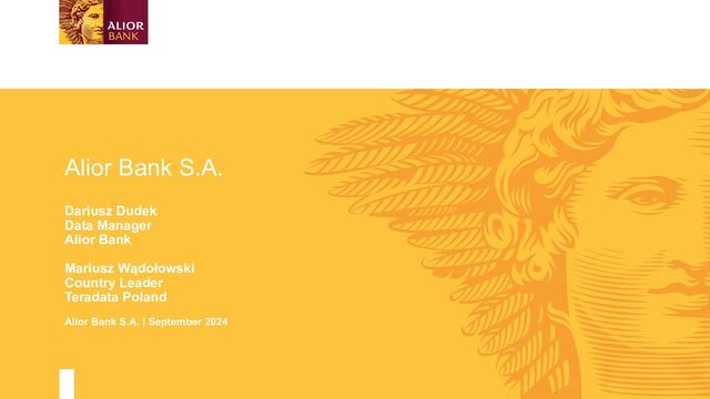 use cases) (1/2) Management reporting • AKG (Analytical General Ledger) • STF (FTP) • FX settlements • Controlling Data Marts • Transactional Data Mart • SRC (Standard Risk Cost engine) • Controlling / Sales / Products / Channels: - Volumes - Profitability - Transactionality • Credit Risk - Quality of the loan portfolio - Credit workflow reports - Scoring and behavioral models - Loan portfolio reporting to PZU • BI (data source to Tableau) Regulatory reporting • Obligatory reporting (reports to the National Bank of Poland, Polish Financial Supervision Authority, EBA, BFG, Warsaw Stock Exchange) • IFRS 9 • New default • CAD (engine for capital requirements) • AMA • Market Risk (Liquidity Risk, Currency Risk, Interest Rate Risk, Other Market Risks, LCR) • CMO / STIR, SInF • FATCA/CRS • GDPR • Security (AML, KDPREVENT) Other business processes • CRM (master repository for operational and analytical CRM) • Advanced Analytics • CashBack • CJEU loan fee refunds • Bonus system for the sales network • Settlements with intermediaries and partners • „Loan Holidays” • Reports to and from BIK • Alior Bank Romania • Data Quality • Dormant accounts • Multi-product 3.000 processes 14.000 SQL scripts 4 m lines of code Over 1.100 HQ users. Over 500 logging daily Basic information: 90 TB compressed data