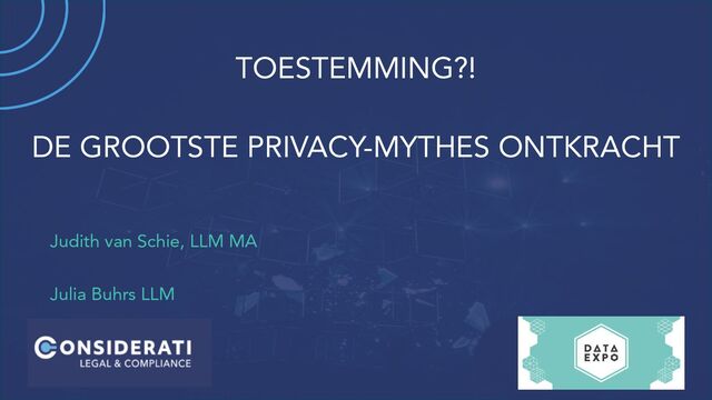 Wettelijke plicht Taak of belang van een overheidsorganisatie Algemeen belang Je hebt verplichtingen uit een contract of moet persoonsgegevens verwerken om een contract aan te gaan Uitvoeren van een overeenkomst Kritieke omstandigheden maken dat iemand niet zelf kan beslissen. Bijv. bij een ongeluk of operatie Vitaal belang Toestemming Grondslagen: zoveel mogelijkheden… Een belang (kan commercieel zijn) dat zwaarder weegt dan de impact op de privacy van een individu. Actieve keuze, vrij gegeven, geïnformeerd