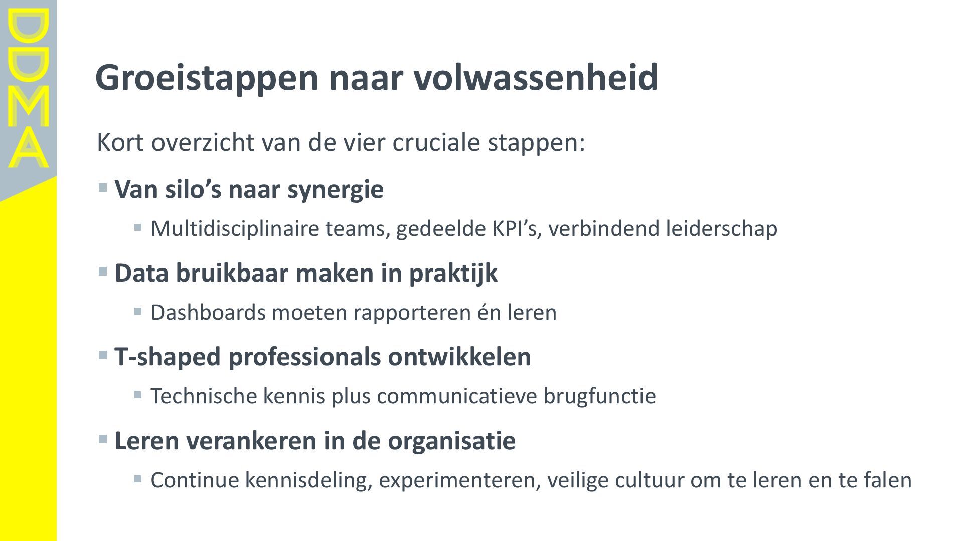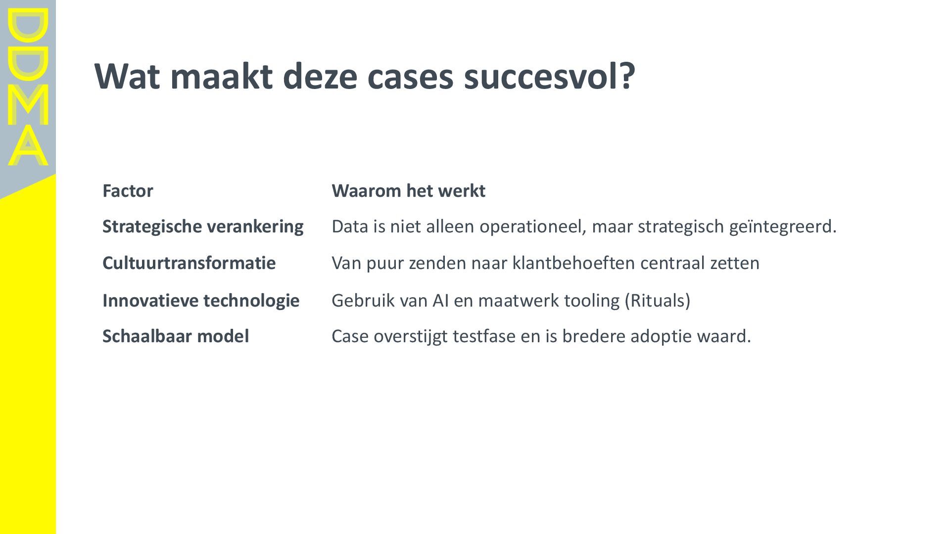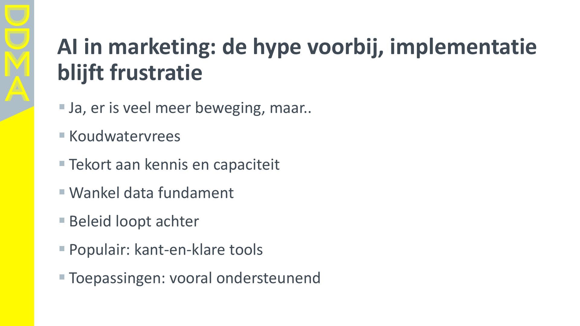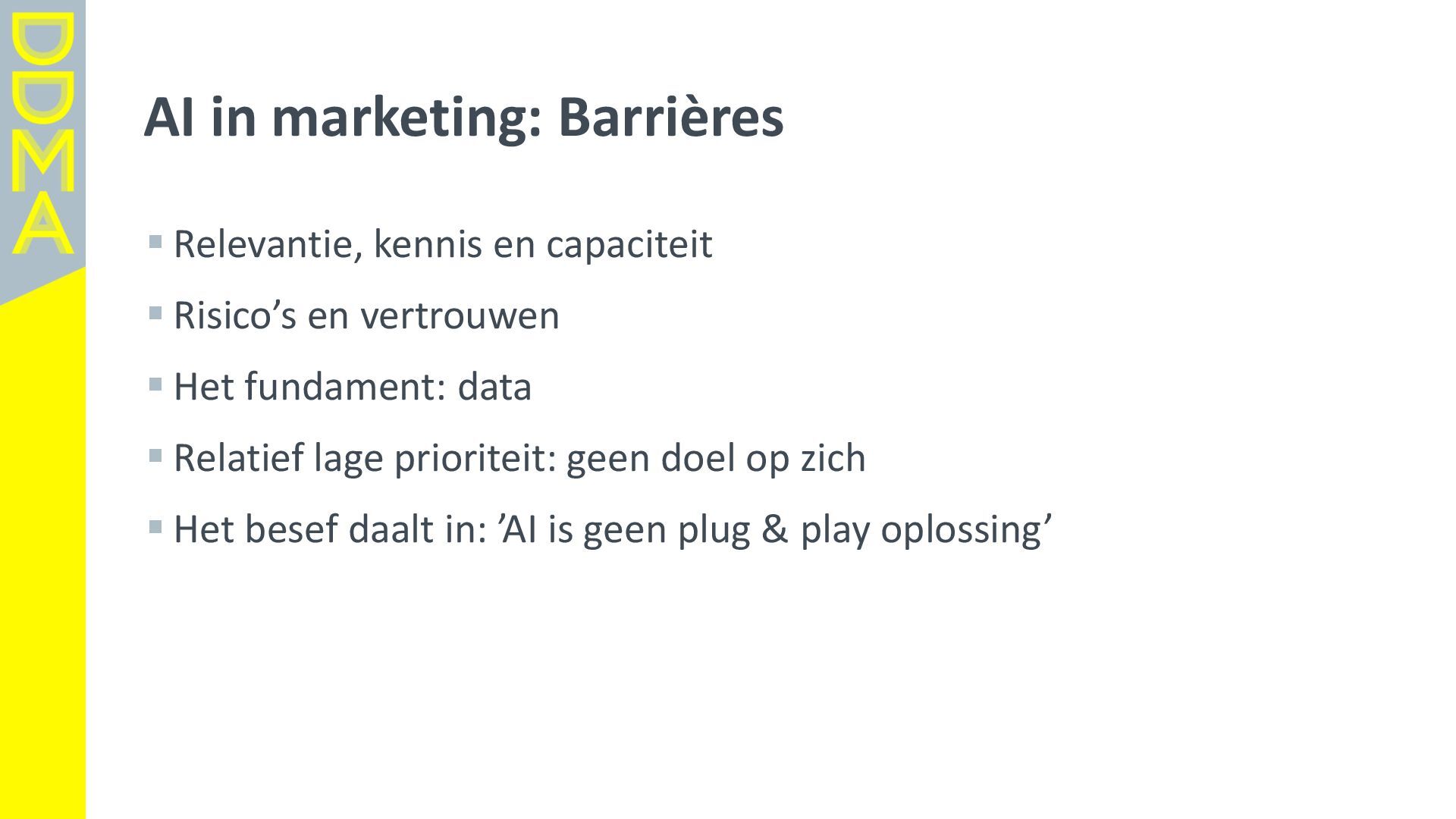 data-driven marketing. Marketing die mensen in beweging brengt, door data, technologie en creatie elkaar te laten versterken. Essentieel daarbij is het verantwoord omgaan met data en technologie. Zowel voor het vertrouwen van consumenten én de toekomst van de marketingsector. • Een netwerk van meer dan 360 organisaties, bestaande uit merken, uitgevers, bureaus, non-profits en dienstverleners. • Team van 17 | 4-koppig bestuur | 14 commissies | 150+ vrijwilligers Rollen • Gids • Verbinder • Stem van de sector