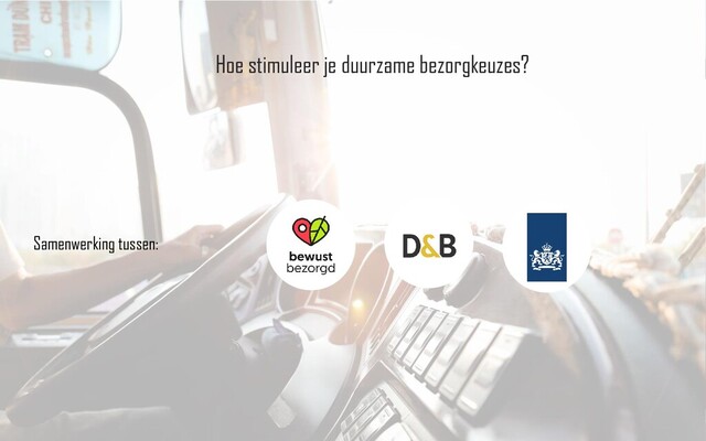 operatie Helpt consumenten om duurzame afleverkeuzes te maken Wat kunnen webwinkels met de methodiek? Consumenten bewustzijn vergroten Belonen van duurzame initiatieven Keten in beweging brengen Reputatie van de sector verbeteren