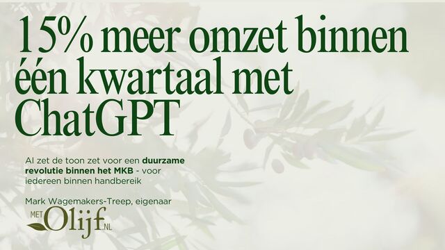 of het waar is wat de chatbot zegt. Ontwikkel daarom ook zelf chatbots waarbij je informatie van o.a. ACM, Thuiswinkel assessments en MilieuCentraal toepast als toetsingscriteria. Wat fijn dat de retouren minder worden, de samples worden gereduceerd, de klantwaardering stijgt en het productaanbod wordt verduurzaamd. Wat kunnen we nog meer - nu we toch bezig zijn? Hartstikke leuk, die creativiteit. Maar zonder meetbaarheid weet je ook niet of je duurzaamheidsinspanningen succesvol zijn. Met ChatGPT hebben we elk hoofdstuk van onze strategie gegoten in SMART KPI's. De kracht van het MKB is een onweerstaanbaar verlangen naar succes en groei. Waarom zou je winst in je eigen zak stoppen als je een deel ervan kan investeren in nieuwe duurzaamheidsdoelstellingen, zoals marketing automation en bijzondere merken? ChatGPT & wet- en regelgeving Van KPI naar klant Bijsturen en oogsten Van winst naar investering Van prompt naar profit Integreren Meten Optimaliseren Renderen