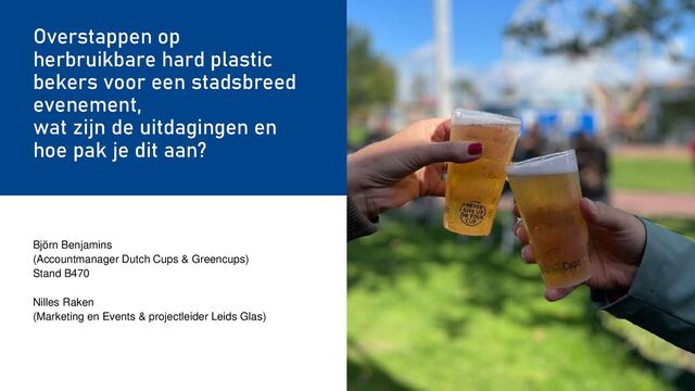 stakeholders en leg verbinding met maatschappelijke partners 2. Beleid 1. Eén systeem voor iedereen: Verplicht gebruik en inname van statiegeldbekers 2. Ontmoedig/verbied verkoop en aanbiedingen van drank door (nacht)winkel 3. Verplicht ook het gebruik statiegeldbekers voor sport- en studentenverenigingen 3. Logistiek, marketing en beheer: Eén systeem voor iedereen 1. Alle horeca gebruiken hetzelfde statiegeldbekersysteem met bekers die de bezoekers overal kunnen inleveren 2. Investeer besparing afvalkosten en zwerfafvalgelden in de statiegeldbekers, coördinatie en de logistieke operatie, marketing en extra beheer Uitgangspunten