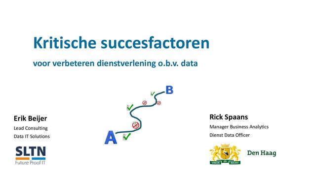 andere volwassenheidsfase op gebied van datagedreven werken • Centrale voorzieningen: • Data strategie – Ambtelijk werkboek • IT-infrastructuur • Data warehouse technologie – Urban Data Platform • Datacatalogus • Algoritmeregister • Dienstspecifiek: • Datavakmanschap • Datamanagement (organisatie) • Data ontsluiten • Dataproducten • Rapportages en dashboards • Data analyses • Beslis-, scenario- en voorspelmodellen • Implementatie Aanpak Gemeente Den Haag Data consumenten