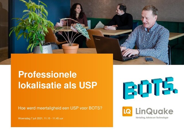 Consistentie in alle uitingen Juiste toepassing van vaktermen Scherpe doorlooptijden Vertaalde content effectief up-to-date houden (app updates, website updates) Diverse bestandstypen kunnen vertalen: CSV, XLIFF, PPT, DOC, XLS etc. Ondertiteling als onderdeel van dienstenpakket Rekening houden met restricties op lengte