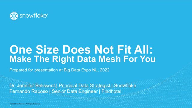 PRINCIPLES Distribute responsibility for data pipelines and data quality to people with domain knowledge. Serve data as-a-product using a common self-service IT infrastructure platform to ensure consistency. Domain-Centric Ownership & Architecture Data as-a-Product Self-Serve Data Platform Federated Governance • Data products reflect use cases, and are easily discoverable • Data products are well-documented, easy to obtain and use • Data products define quality requirements • Domains are accountable to “customers” • Domain-agnostic, common tool set • Easy to use and low maintenance to support • Easy to deploy repeatable patterns for common requirements: cleansing, transformation, automation, storage, security, governance, sharing • Data governance is coordinated global to ensure interoperability across domains • Access and use policies are coordinated • Governance is applied within domains • Data pipelines owned by teams with domain knowledge • Domains own cleansing, refinement, historization, pre-aggregation, etc. • Domains responsible for data governance • Domains deliver data products to “customers”
