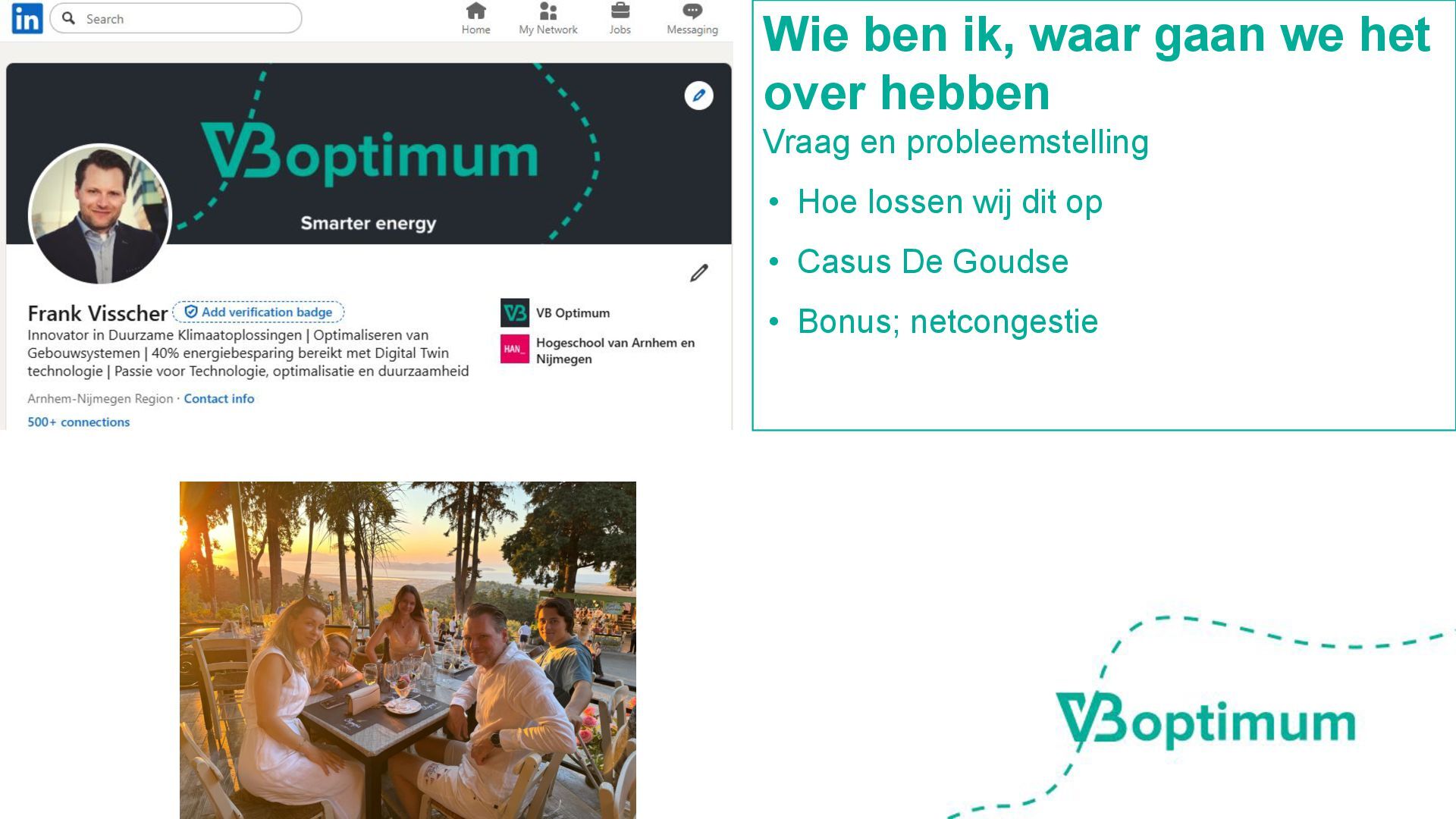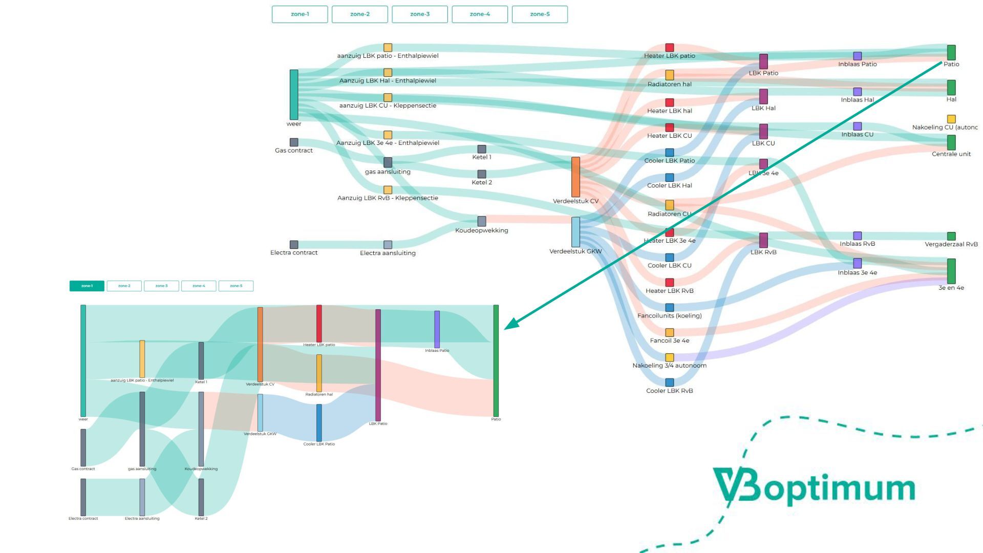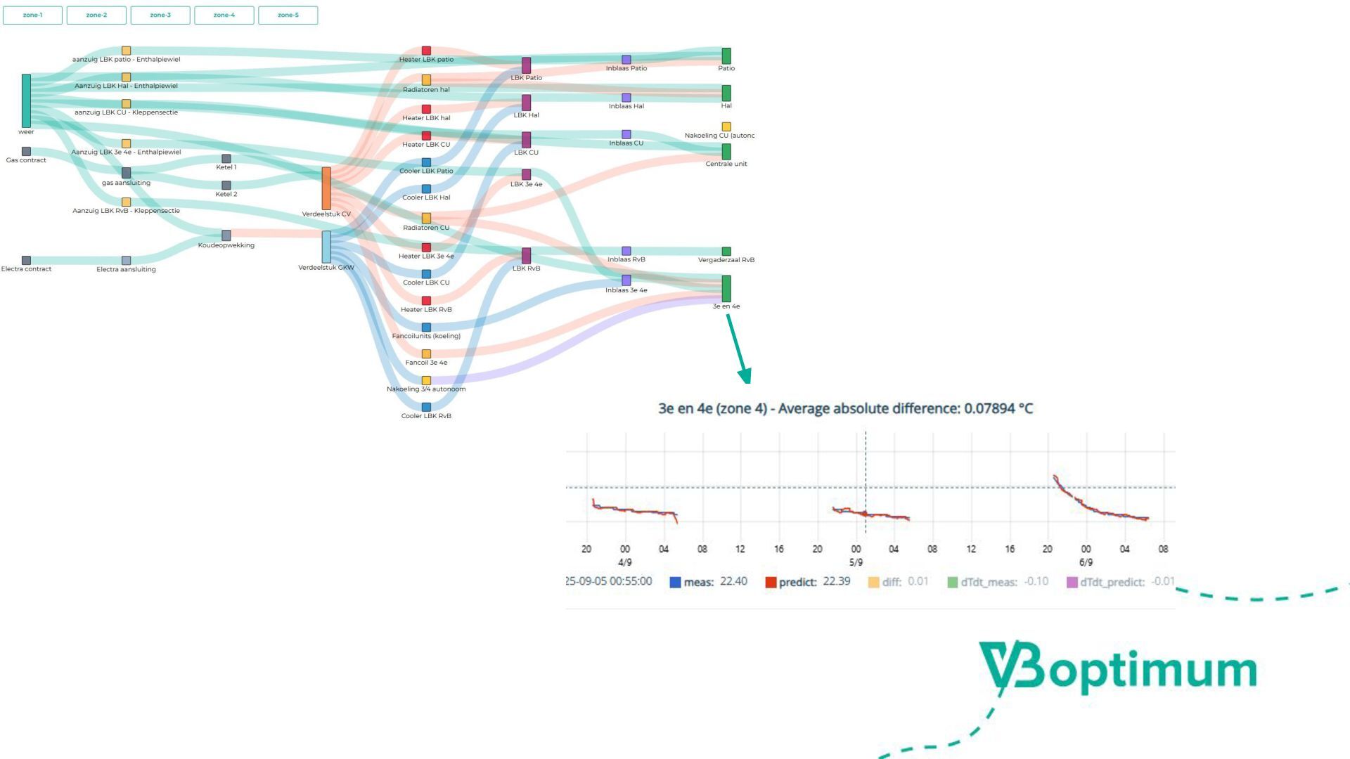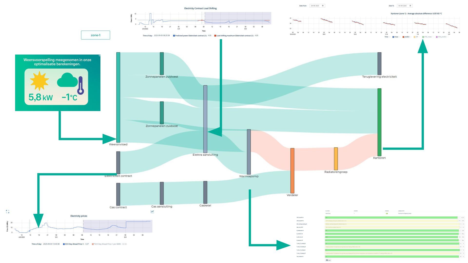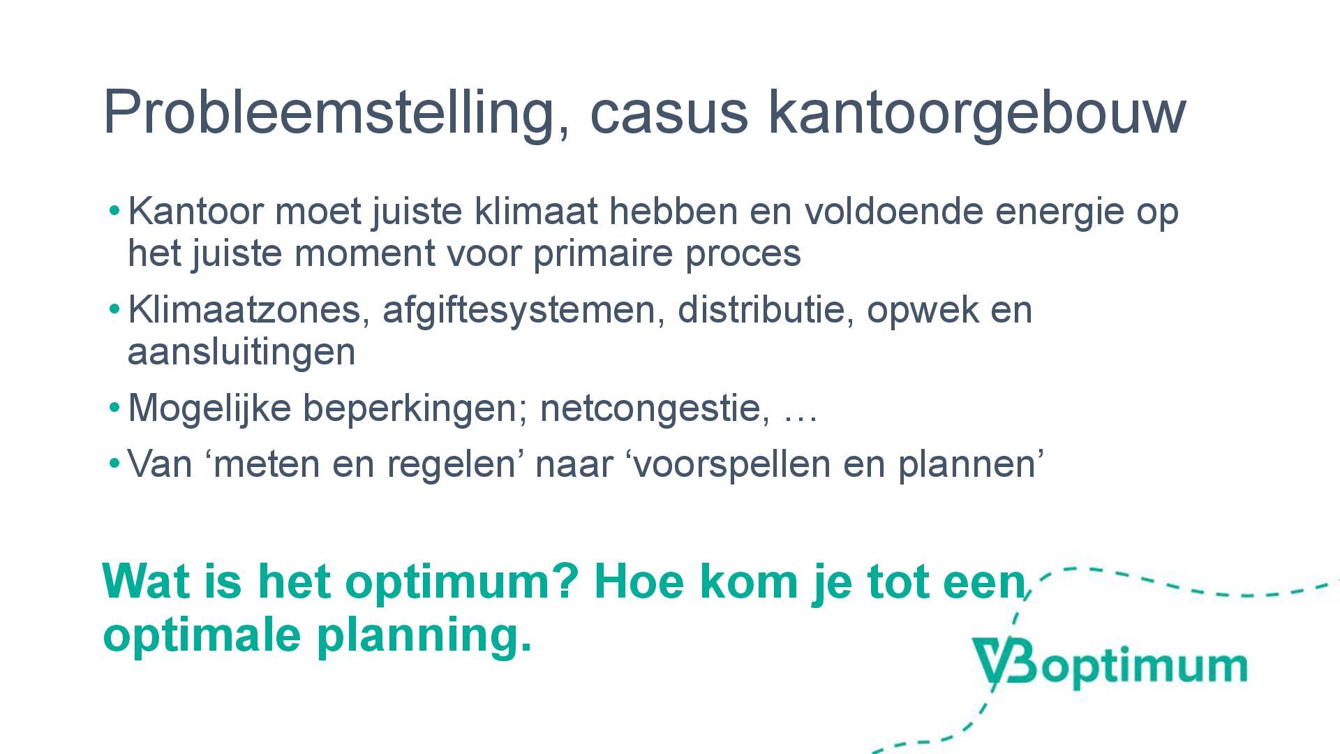 energie op het juiste moment voor primaire proces •Klimaatzones, afgiftesystemen, distributie, opwek en aansluitingen •Mogelijke beperkingen; netcongestie, … •Van ‘meten en regelen’ naar ‘voorspellen en plannen’ Wat is het optimum? Hoe kom je tot een optimale planning.