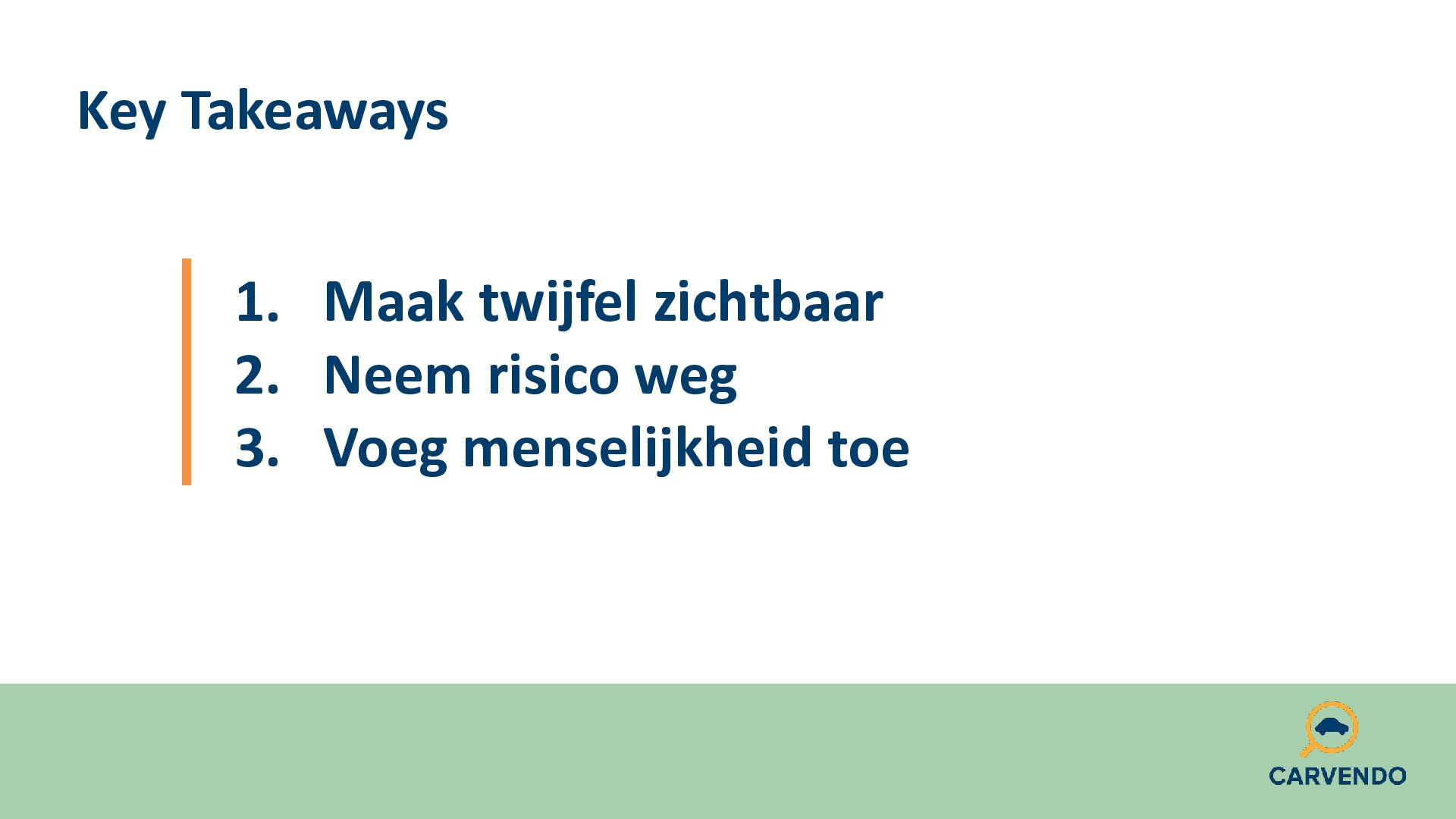 1. Maak twijfel zichtbaar 2. Neem risico weg 3. Voeg