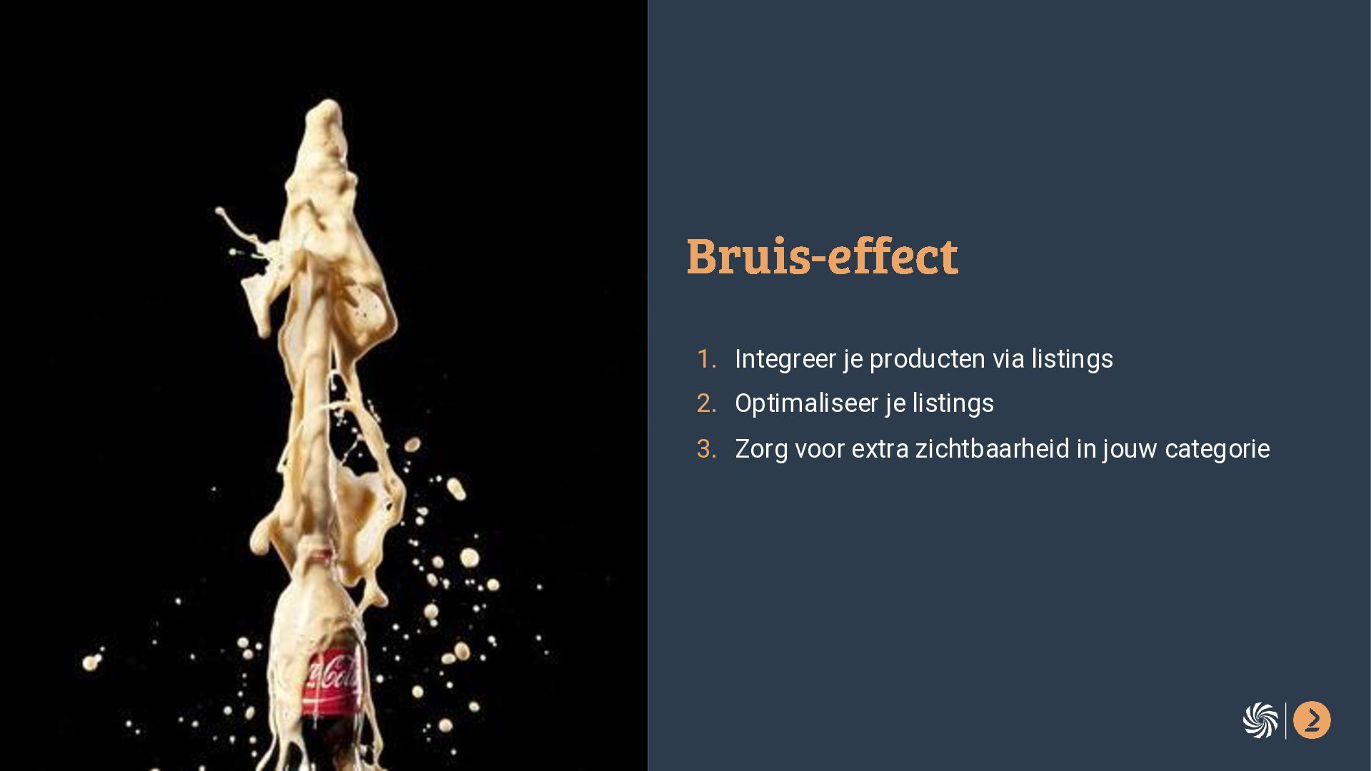 Bruis -effect 1. Integreer je producten via listings 2. Optimaliseer