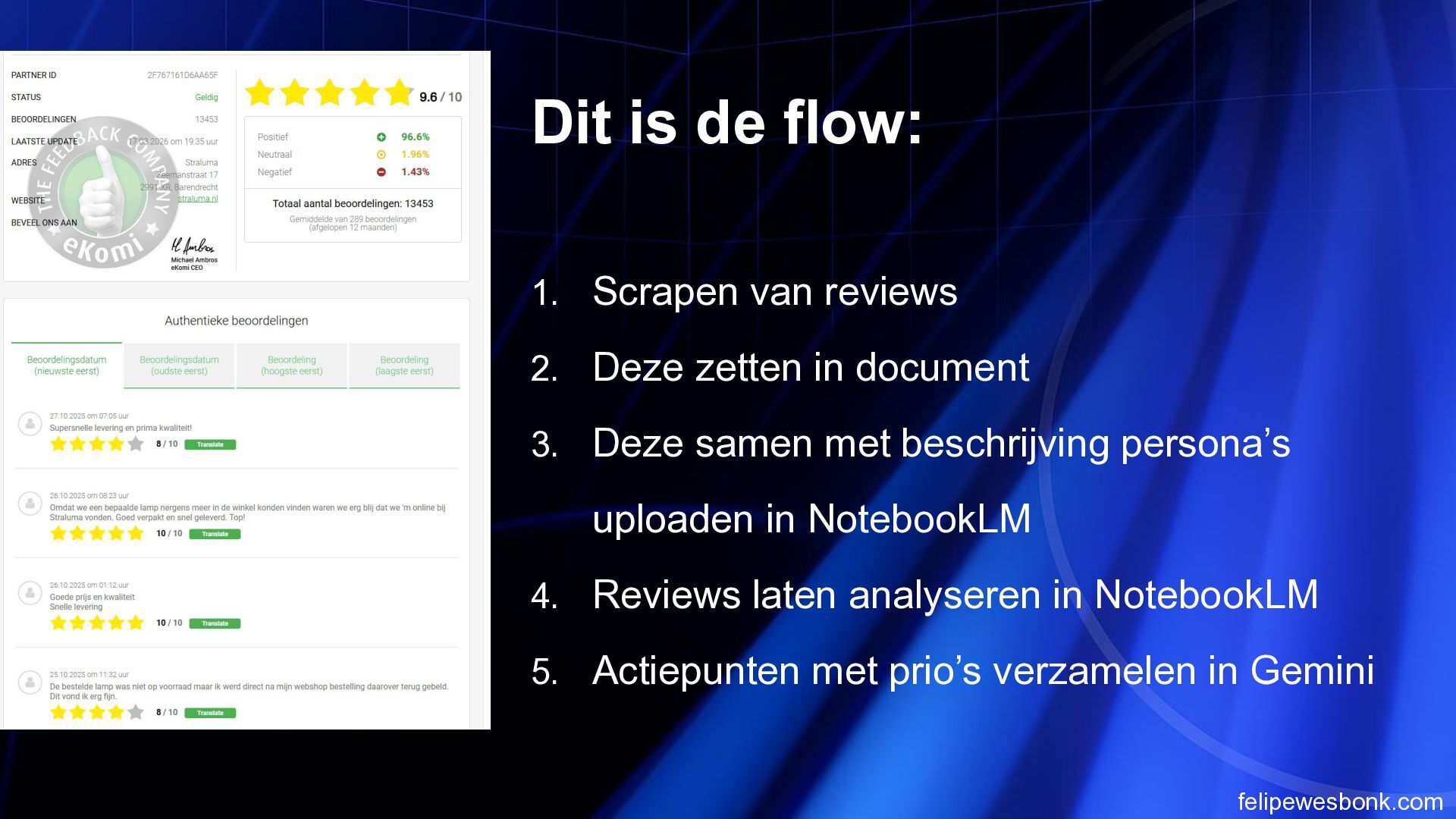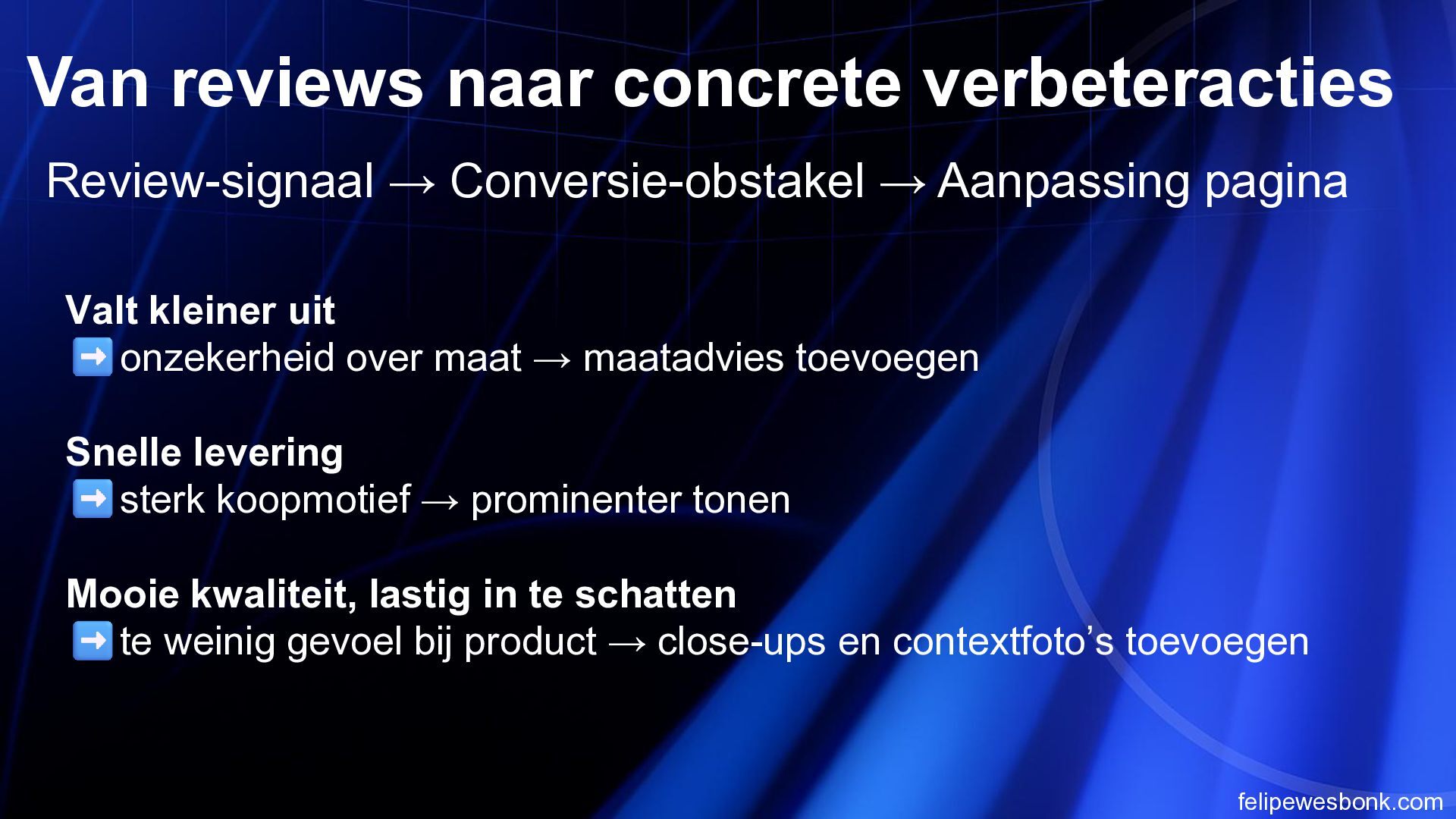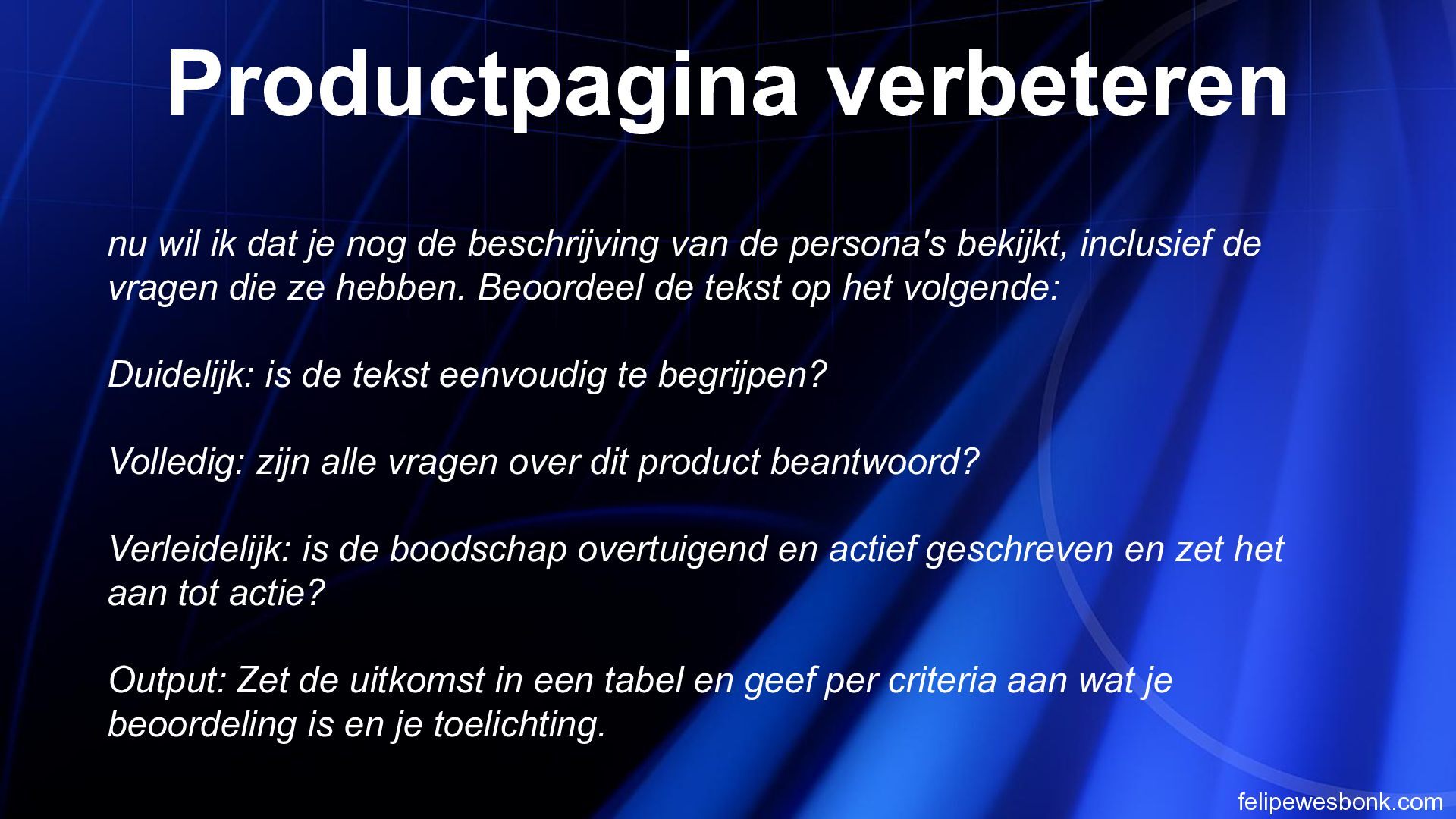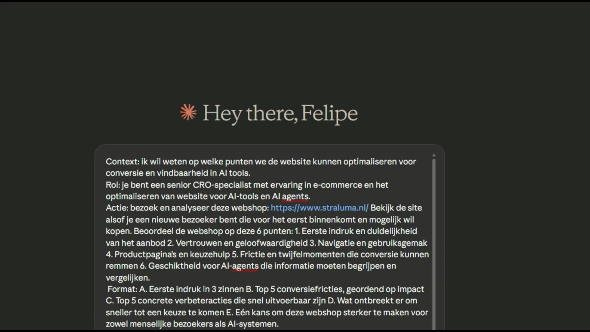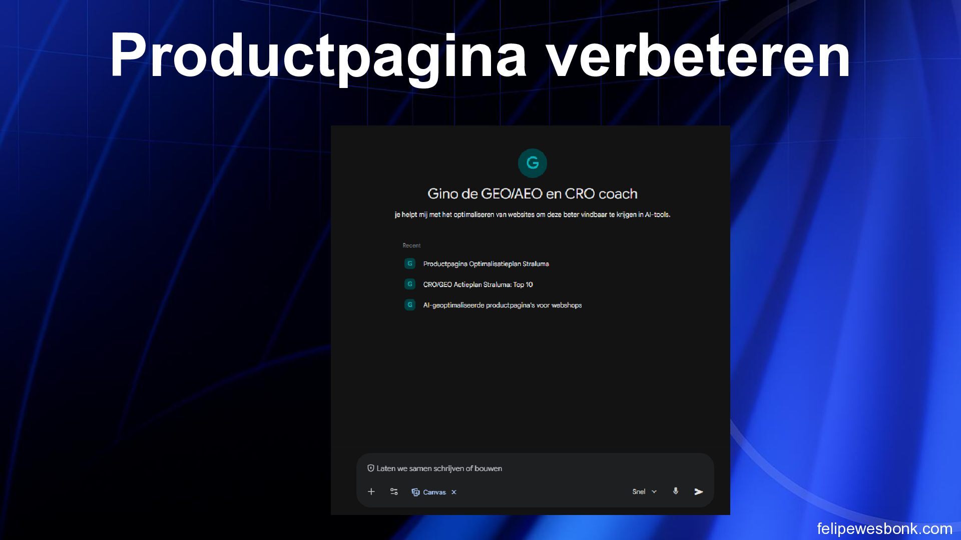 de belangrijkste specs en USP’s (dimbaar, lichtsterkte, materiaal) direct boven de “In winkelmandje” knop. AI-assistenten en gebruikers zien meteen of het product aan de eisen voldoet; dit verkort de besluitvormingstijd en verhoogt de kans op conversie. 2 Voeg een vergelijkingsfunctie/toevoeg-knop aan productkaarten toe. Hierdoor kunnen AI-agents meerdere lampen selecteren en specificaties naast elkaar zetten. Dit maakt de site aantrekkelijker voor doelgerichte shoppers en versnelt productselectie. 3 Publiceer een gestructureerde datafeed (Schema.org) met productnaam, prijs, dimbaarheid, lumen en retourbeleid. Zoekmachines en AI-assistenten kunnen deze data sneller interpreteren, waardoor producten hoger in zoekresultaten verschijnen en sneller gevonden worden. 4 Integreer een compacte FAQ op de productpagina met vragen over montage, verzending en retouren. Dit beantwoordt directe vragen zonder weg te navigeren. AI-agents hoeven minder pagina’s te doorzoeken, wat de kans op conversie vergroot. 5 Maak filters en sortering op zoekresultaatpagina relevanter voor AI (bijv. filter op “dimbaar” of “aantal lichtpunten”). AI-assistenten kunnen snel het juiste product selecteren; dit vermindert de tijd om de juiste lamp te vinden en verhoogt de tevredenheid van gebruikers.
