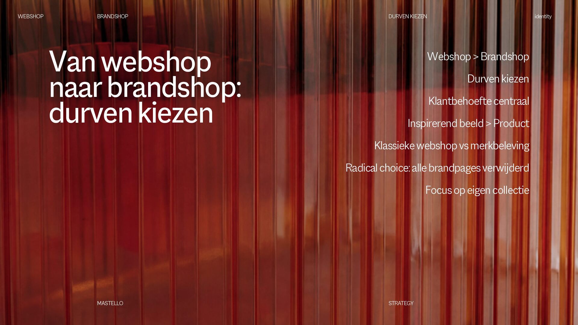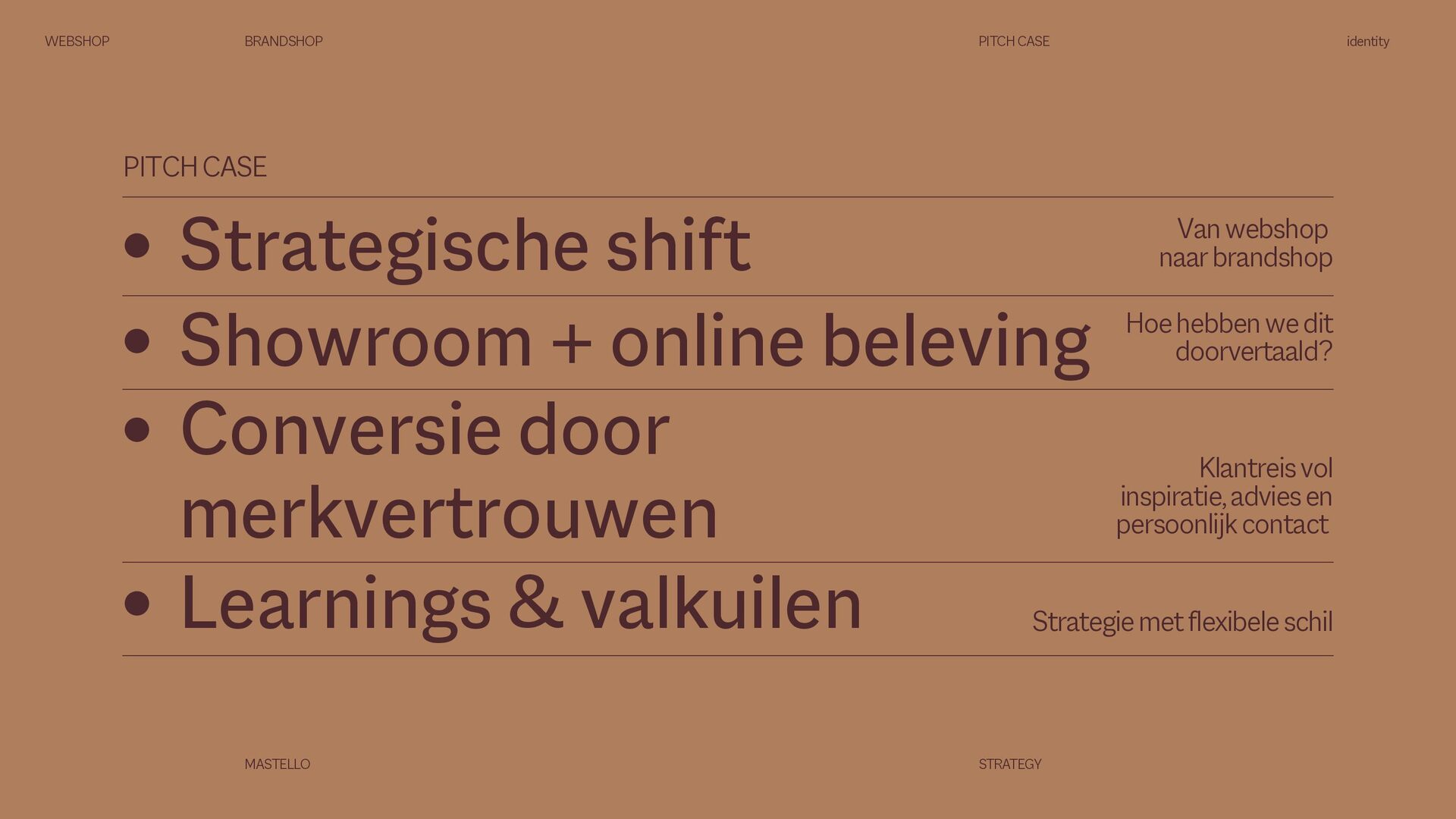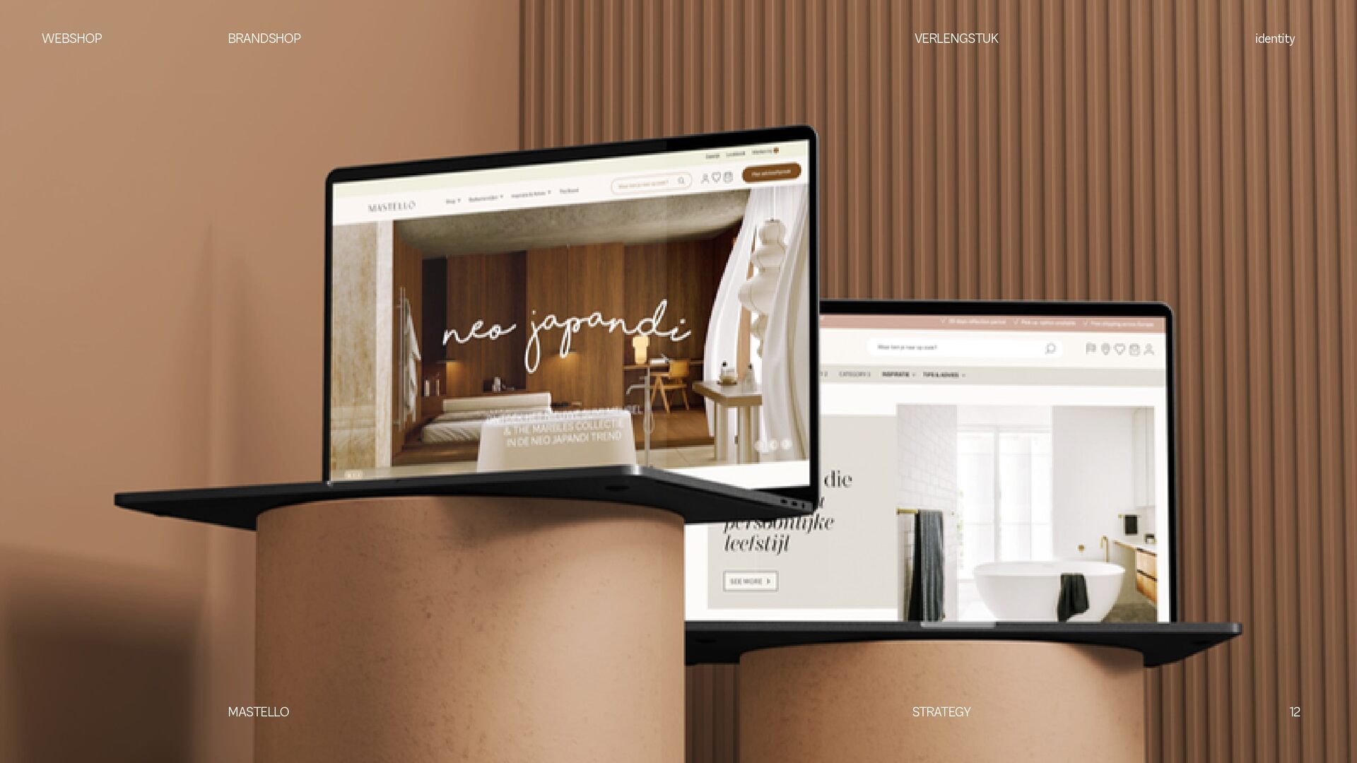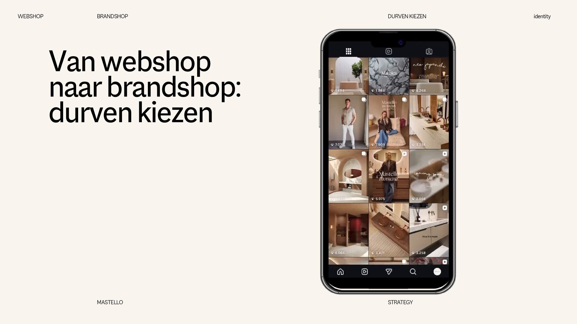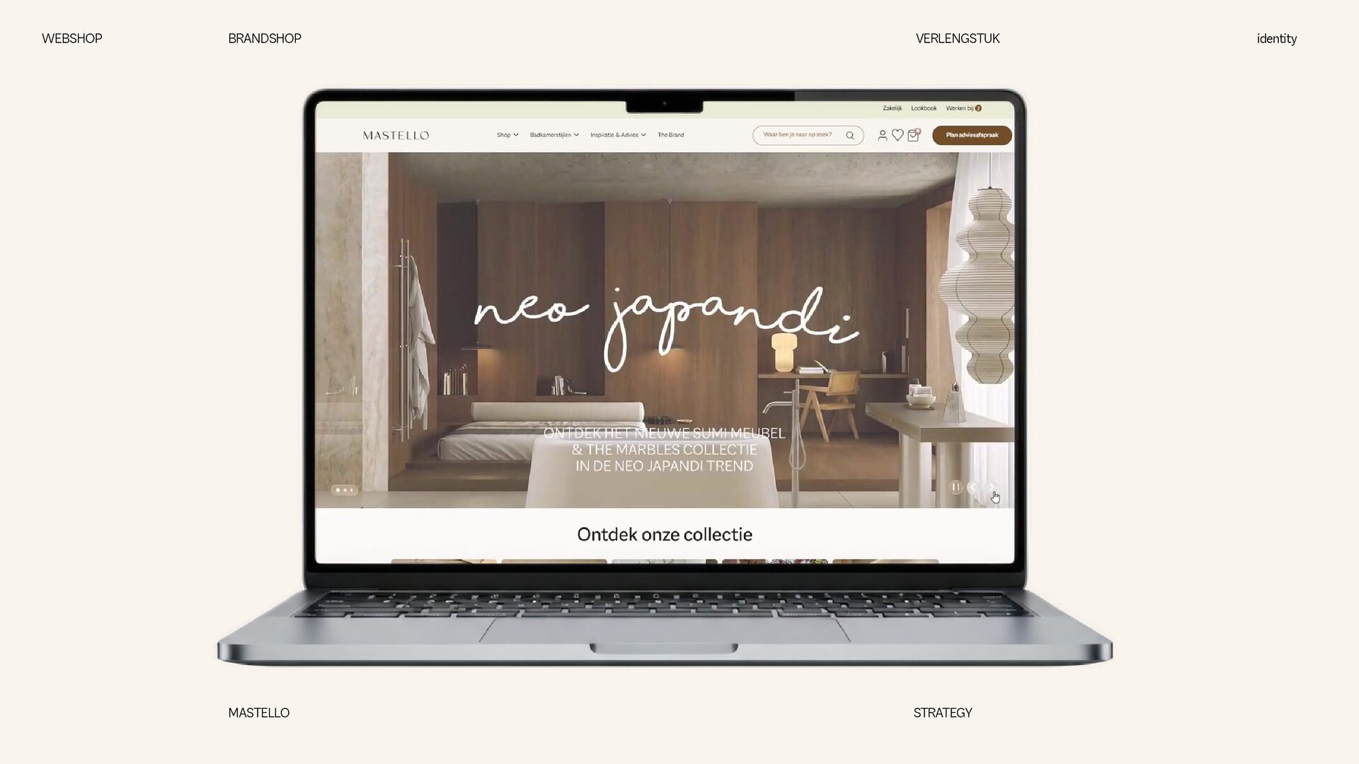 is een Nederlands sanitairmerk waar stijl en eigenheid centraal staan. We creëren badkamers die volledig aansluiten op jouw woonwensen. Met een scherp oog voor design en interieurtrends ontwikkelen we vernieuwende producten en eigenzinnige collecties. Bij Mastello geloven we dat de badkamer niet slechts een functionele ruimte is, maar een essentieel onderdeel van de woonbeleving, dat evenveel aandacht verdient als elke andere leefruimte. Onze maatwerk opties zorgen ervoor dat iedere badkamer uniek is. Van stijlvolle designs tot gedurfde statements – met Mastello wordt elk detail een bewuste keuze. WEBSHOP BRANDSHOP BRAND STRATEGY identity MASTELLO STRATEGY