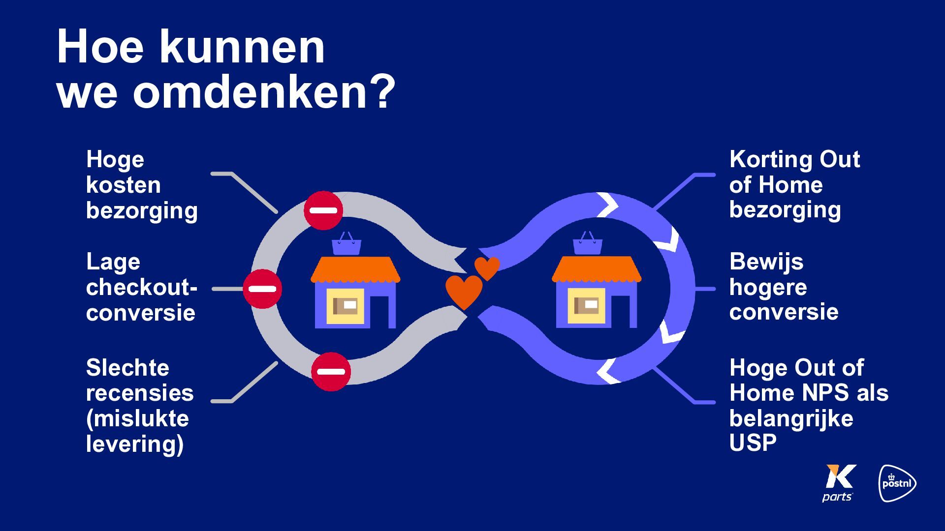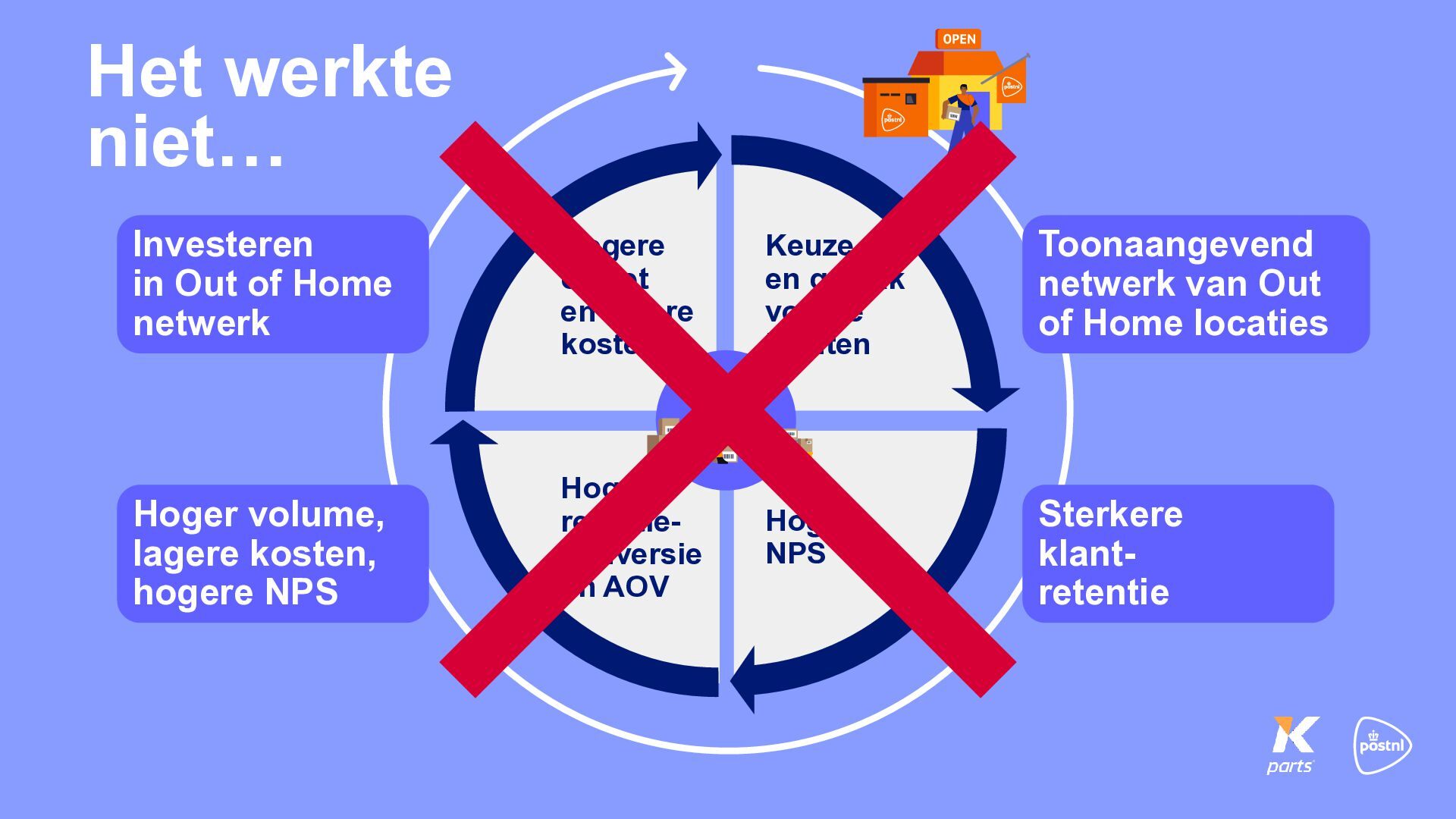 klanten Hogere NPS Hogere retentie- conversie en AOV Investeren in Out of Home netwerk Hoger volume, lagere kosten, hogere NPS Toonaangevend netwerk van Out of Home locaties Sterkere klant- retentie Het werkte niet…