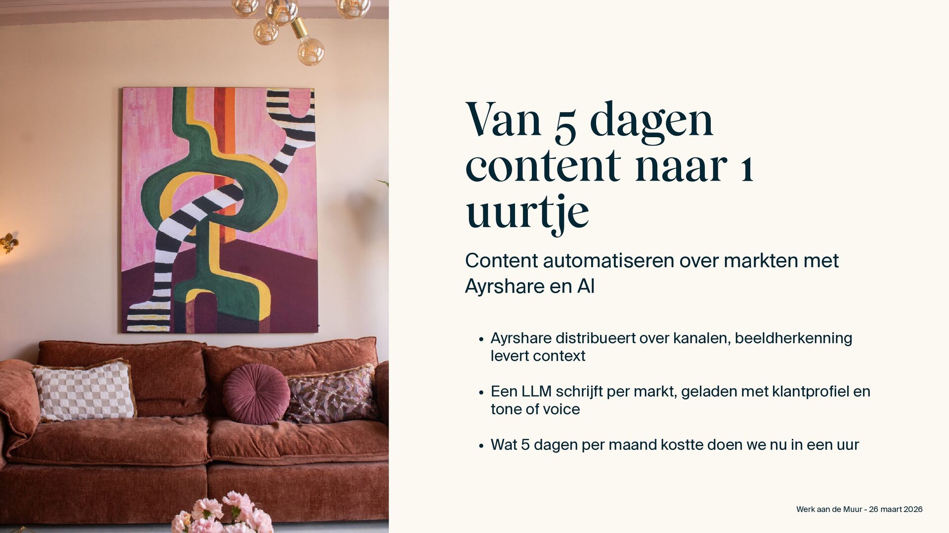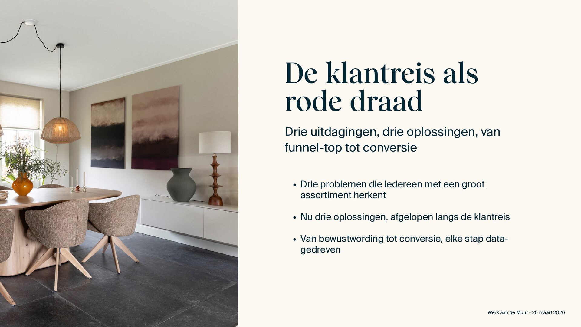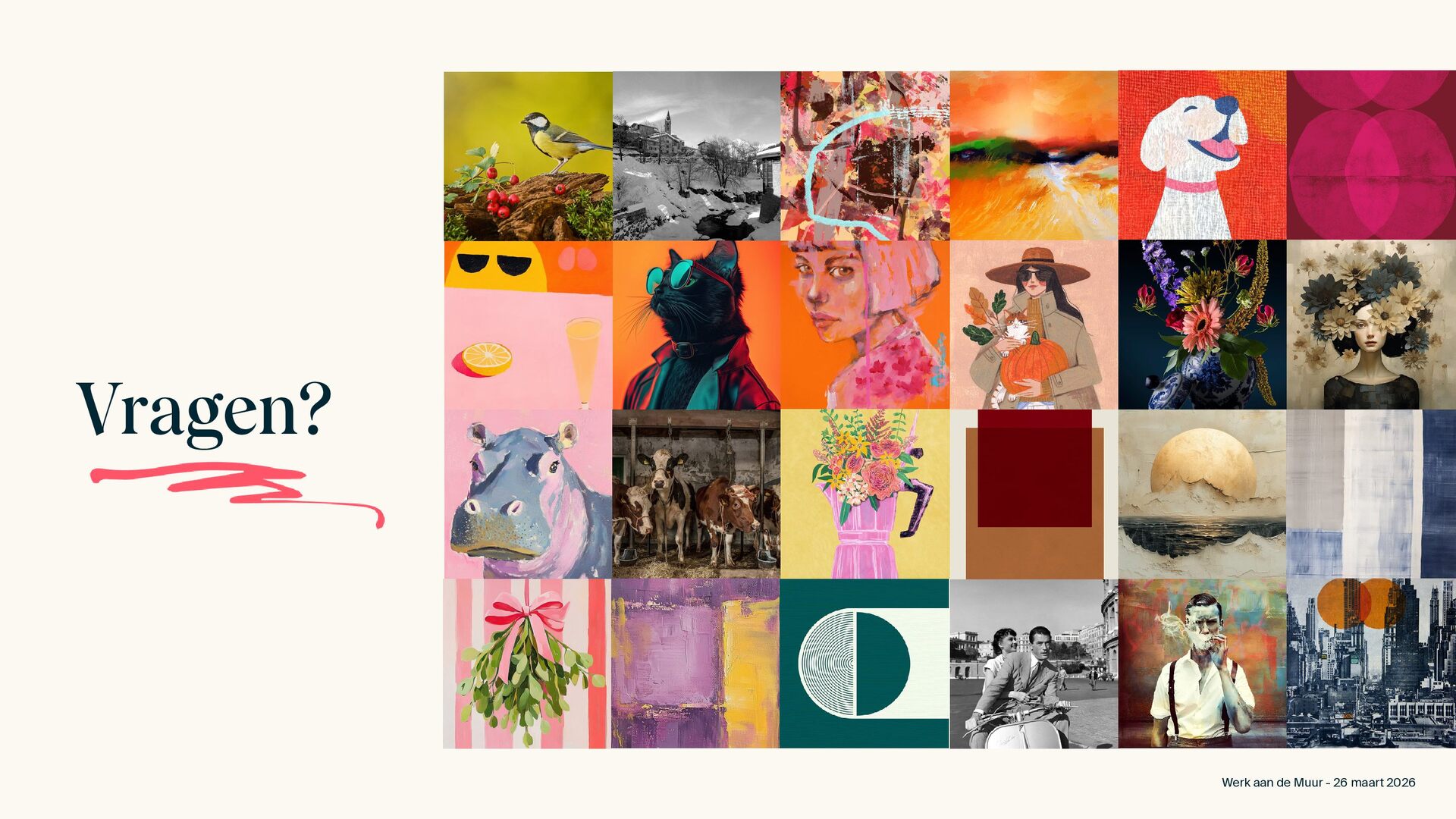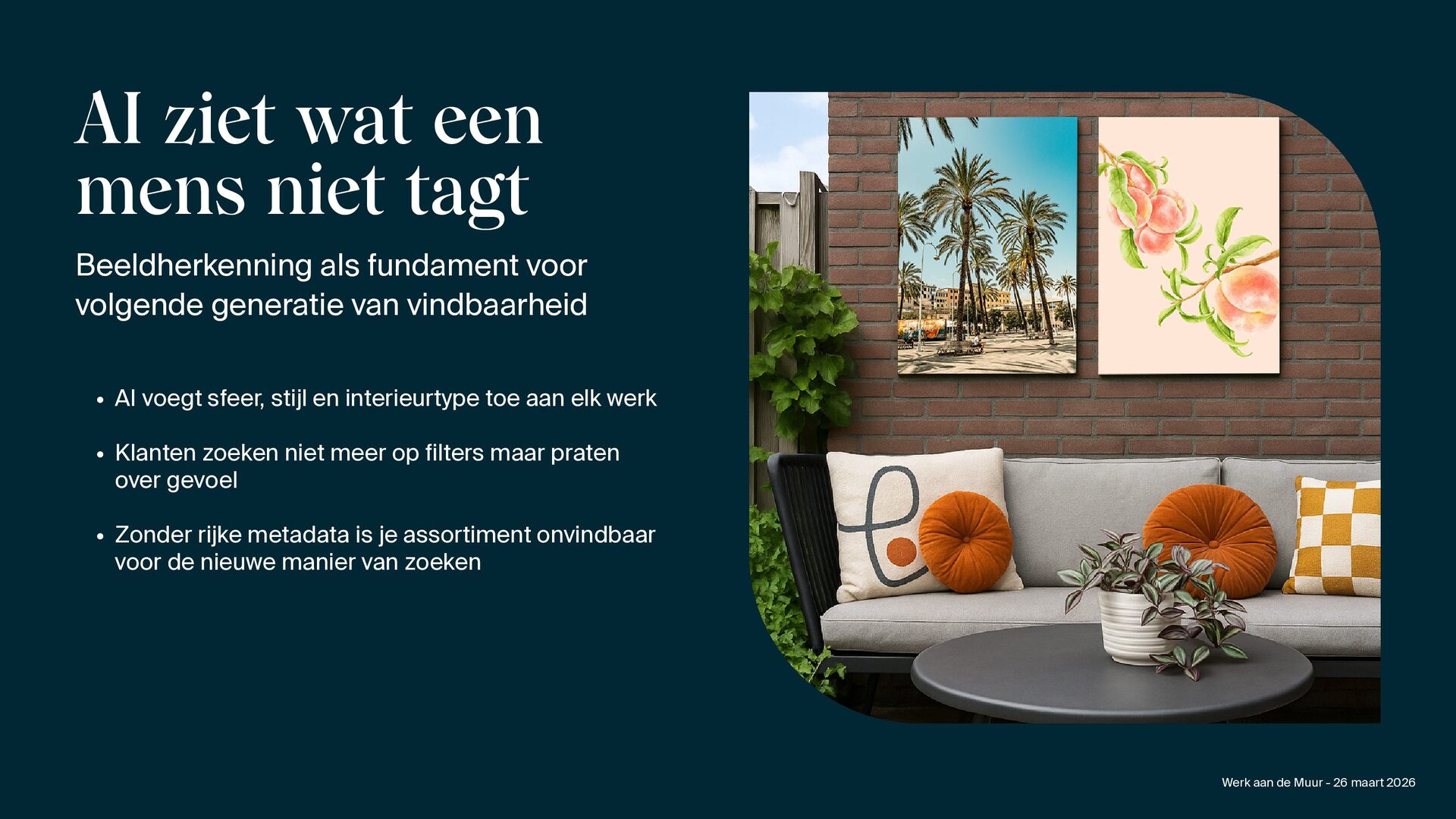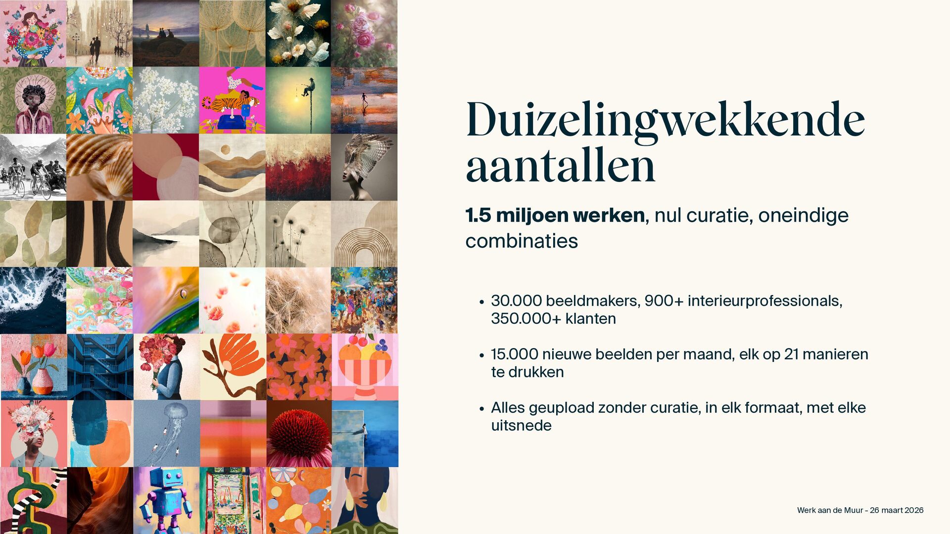 funnel campagnes vertalen door naar gepersonaliseerde landingspagina's BCG-matrix verdeelt collecties, werken en beeldmakers in kwadranten, bepaalt zo focus en zichtbaarheid Custom BCG-matrix, Whize segmentatie en klantdata als persoonlijke gids Ken je klant, filter de catalogus alvast Werk aan de Muur - 26 maart 2026