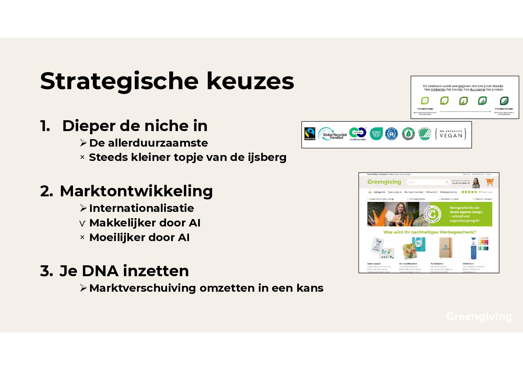 Steeds kleiner topje van de ijsberg 2. Marktontwikkeling Internationalisatie ѵ Makkelijker door AI × Moeilijker door AI 3. Je DNA inzetten Marktverschuiving omzetten in een kans