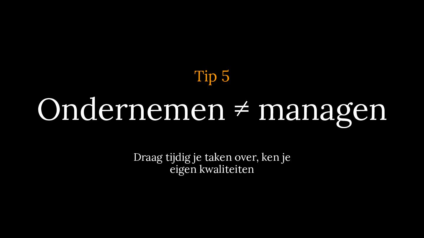 Tip 5 Ondernemen ≠ managen Draag tijdig je taken over,