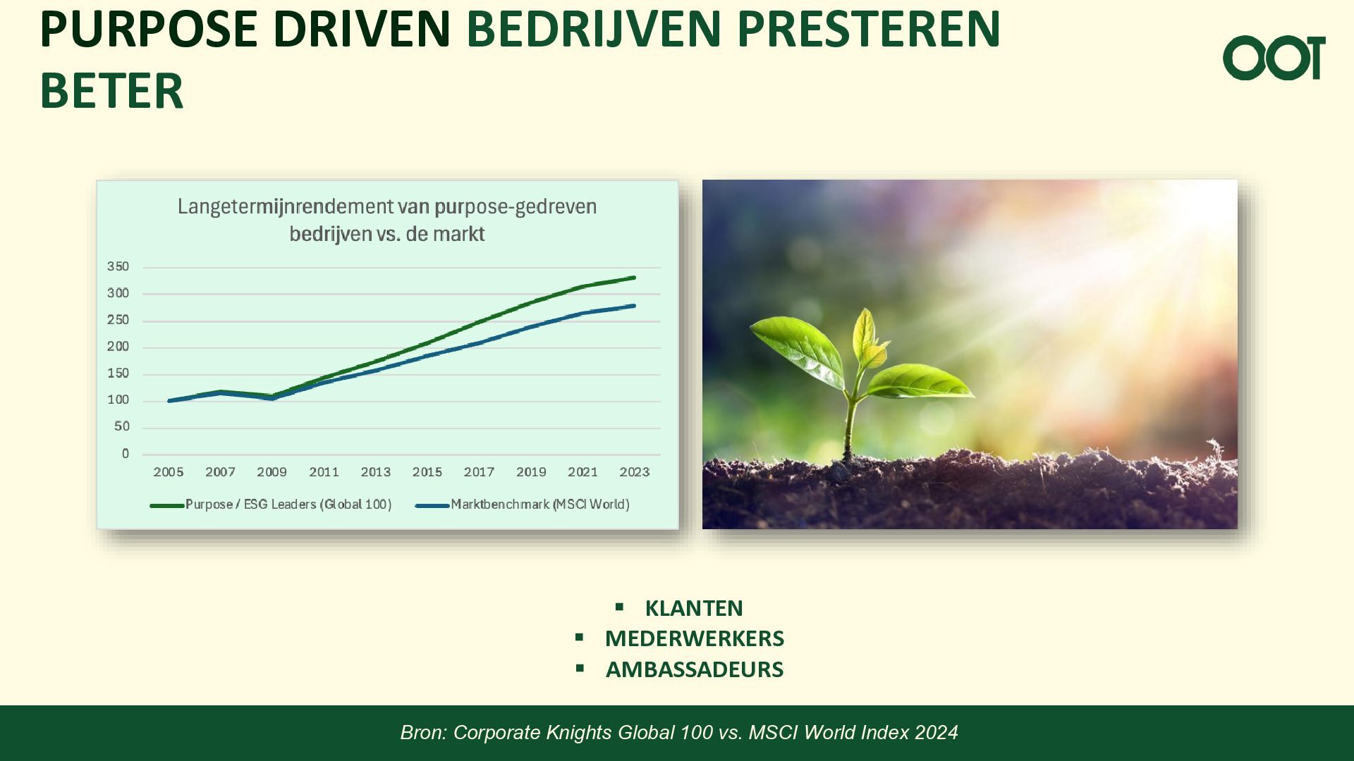PURPOSE DRIVEN BEDRIJVEN PRESTEREN BETER Bron: Corporate Knights Global 100