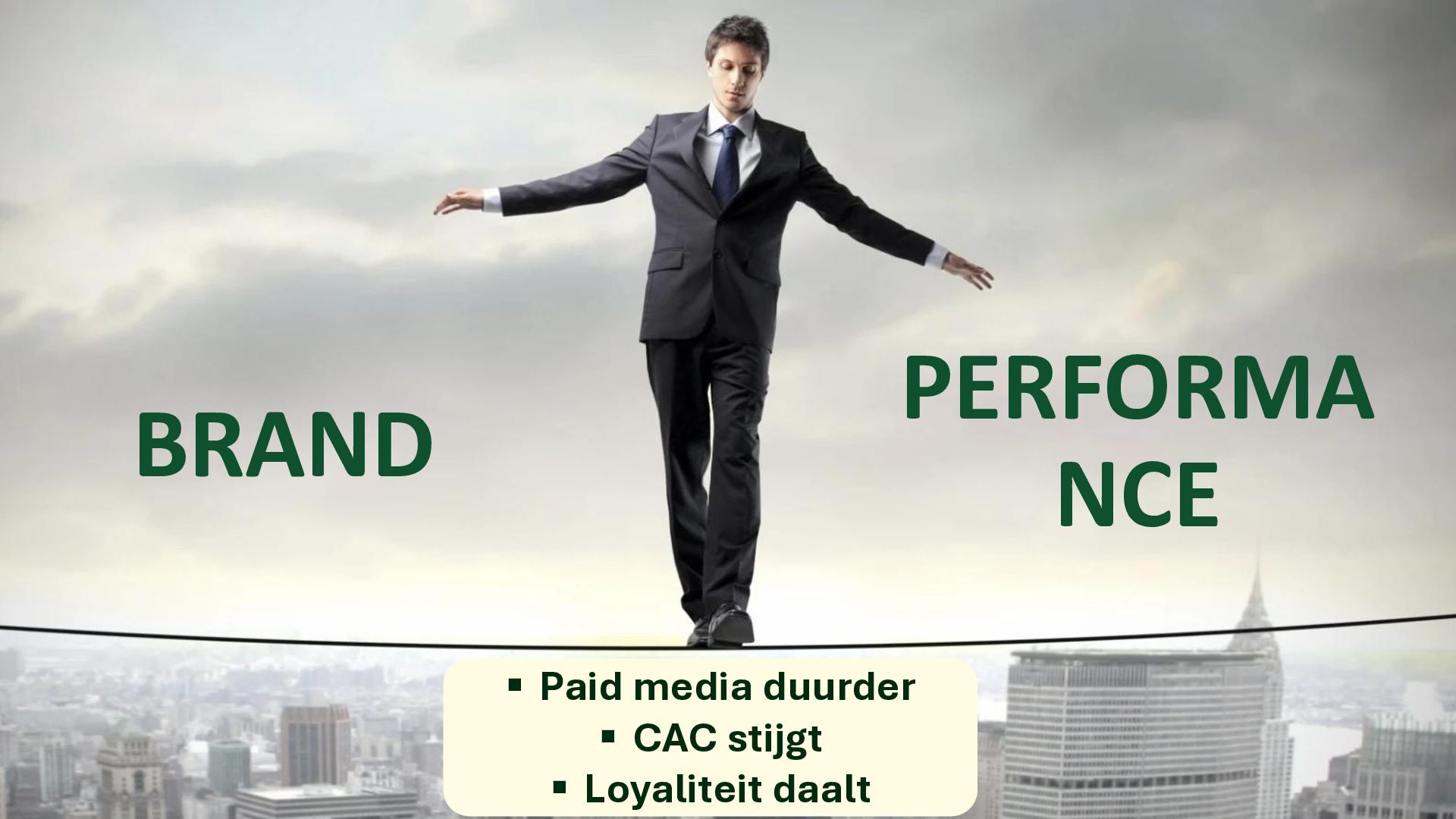 lopen • CAC stijgt • Paid media duurder • Creatives slijten sneller • Loyaliteit daalt -> REFLEX: MEER PERFORMANCE MARKETING BRAND PERFORMA NCE PURPOSE NIET KIEZEN - COMBINEREN