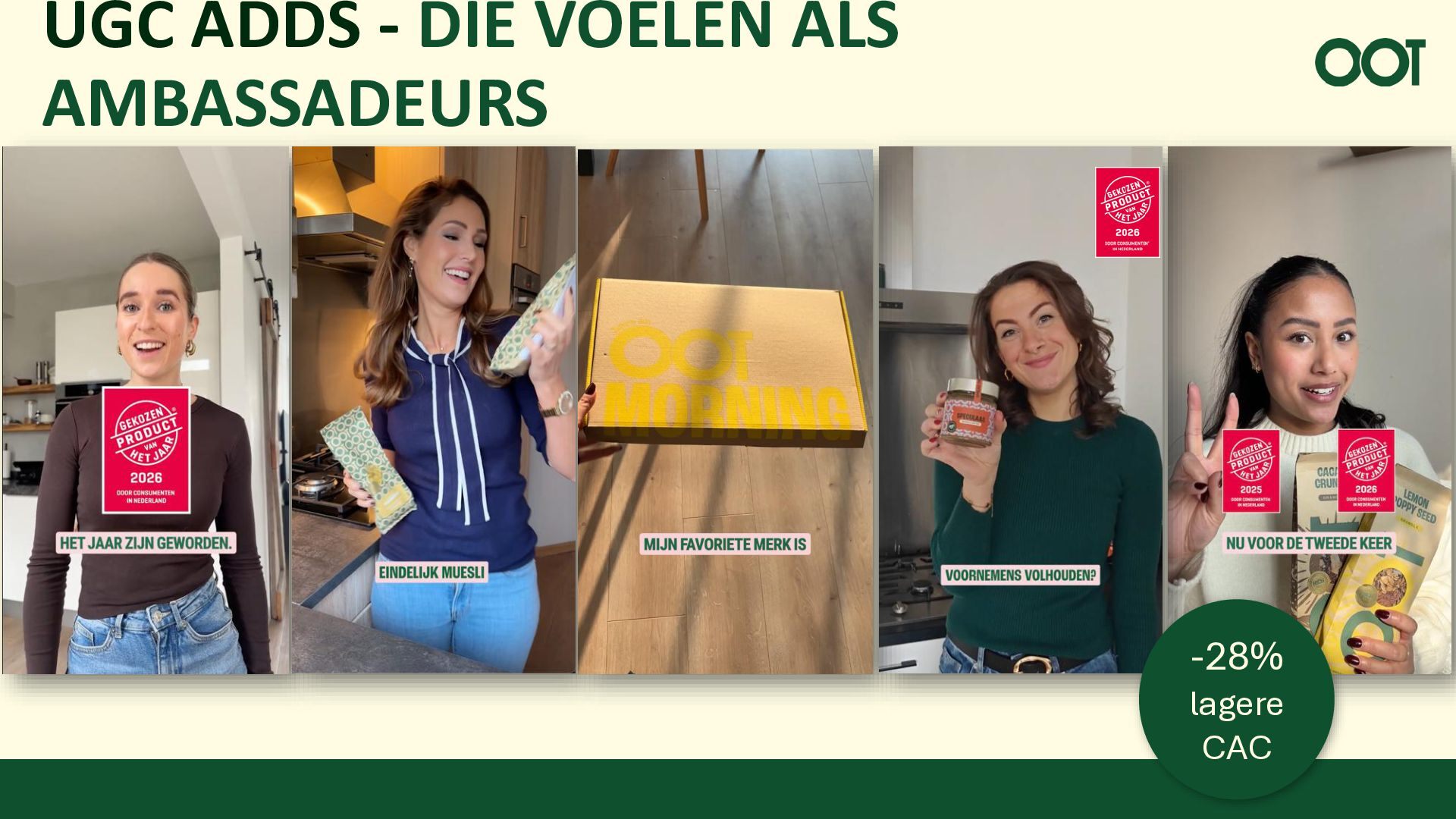 & Yvette van Boven Co-Creatie Products • Bundles • Videos Content Performance UGC ads • Ambassador ads • Podcasts Sterke missie en merkverhaal UGC • Social • Storytelling Klanten die zich verbonden voelen