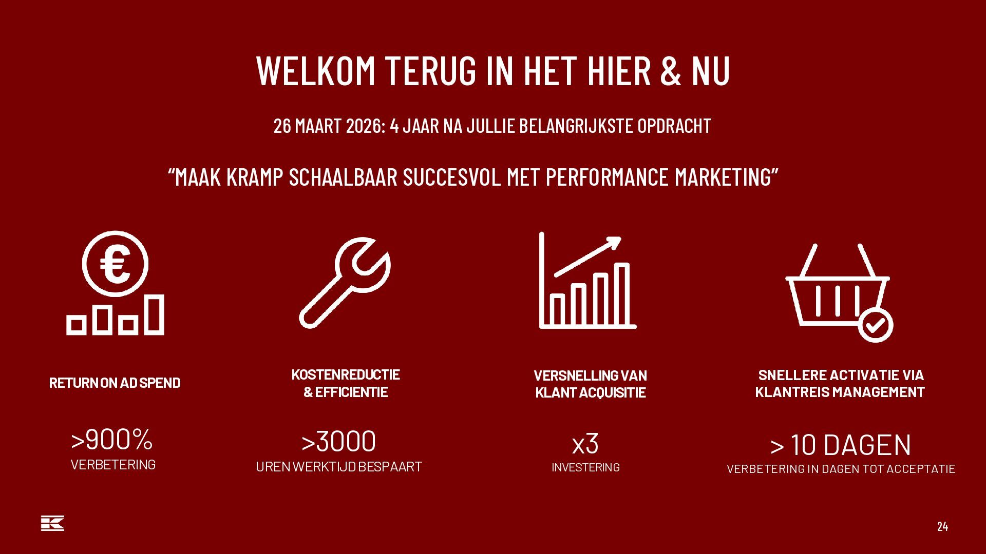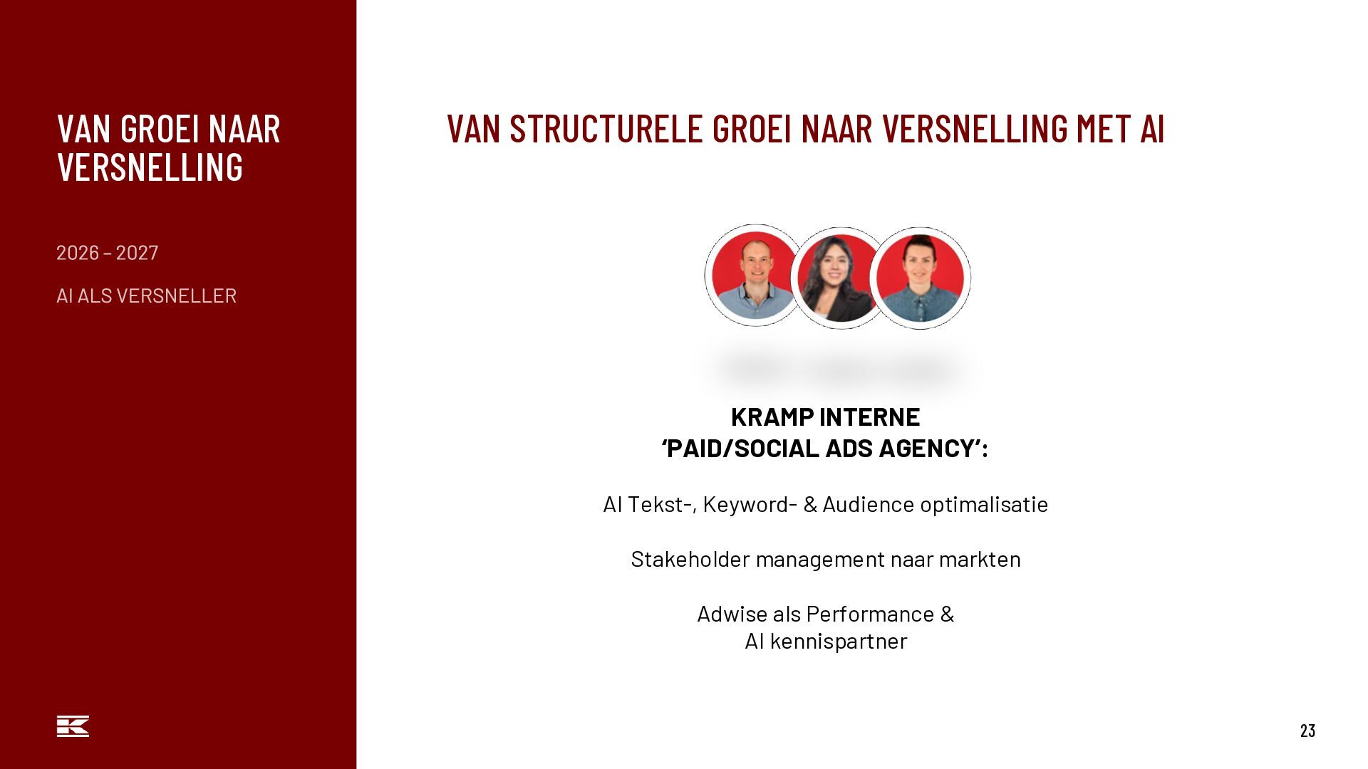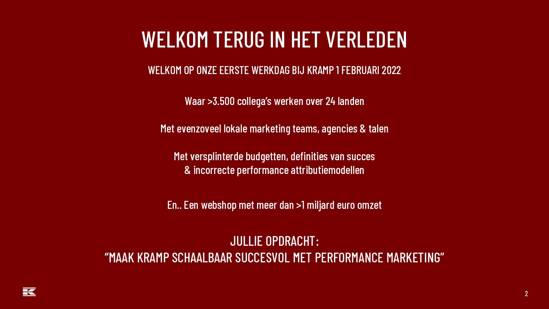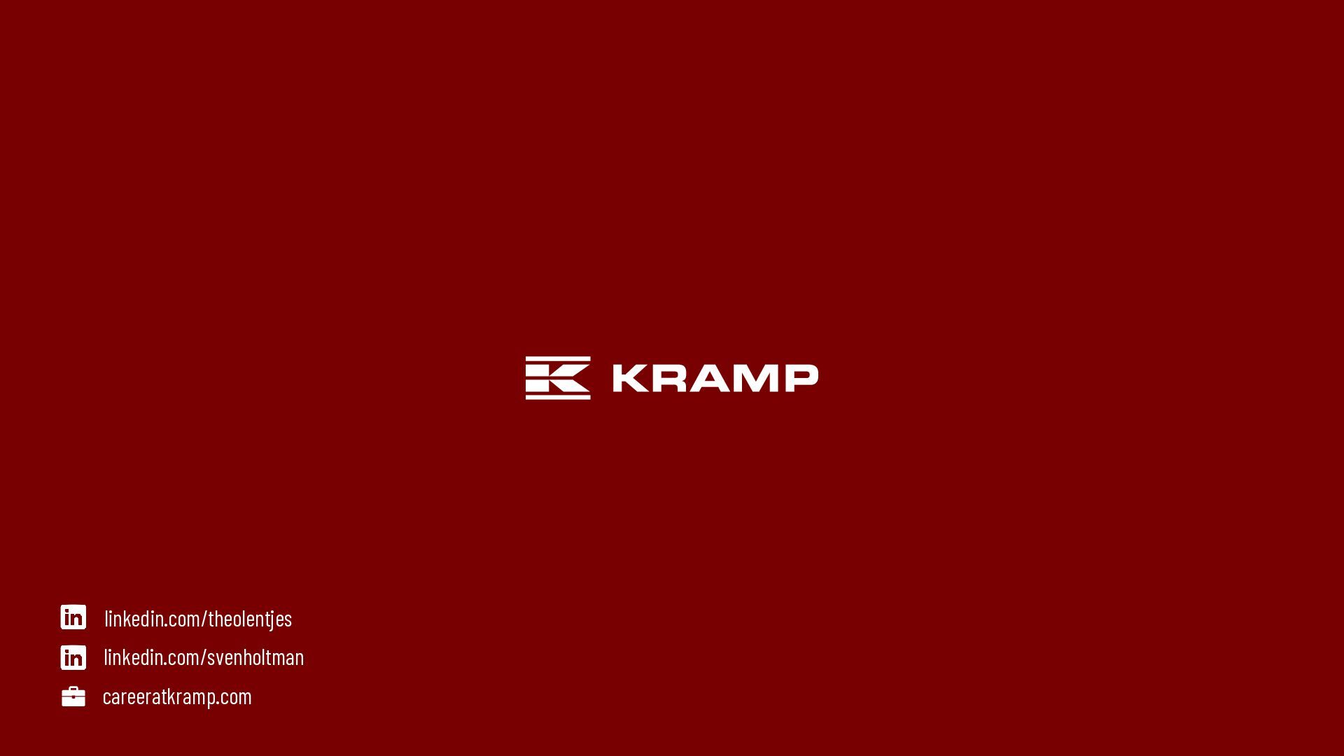 AGRARISCHE SECTOR 1951 Kramp begon In Varsseveld 1951 - 1976 1977 - 2002 2002 - NU 1955 Eerste papieren catalogus in de industrie 1955 Perdok bedrijf begonnen in Groningen 2001 Onze eerste webshop gelanceerd 1977 Eerste bedrijf buiten Nederland in Hamminkeln (DE) 1988 Joint venture in het Verenigd Koninkrijk & Ierland 2013 Overname van Grene 2018 Overnamevan Raico Italiëen Recinsa Spanje 2003 Overname van PBL in Frankrijk 2017 Opening van de Tech HUB in Utrecht 2023 Overnamevan GenfittIreland 1990 Eerstebedrijfdat ‘s nachts levert 1992 Opening kantoor België 1999 Fusie van twee familiebedrijven Kramp en Perdok XXX MEDEWERKERS XXX€ OMZET MEDE MEDEWERKERS 1.230.000.000€ OMZET XXX MEDEWERKERS XXX€ OMZET 4 780 4.059,801€ 1758 164,932,000€ 3636