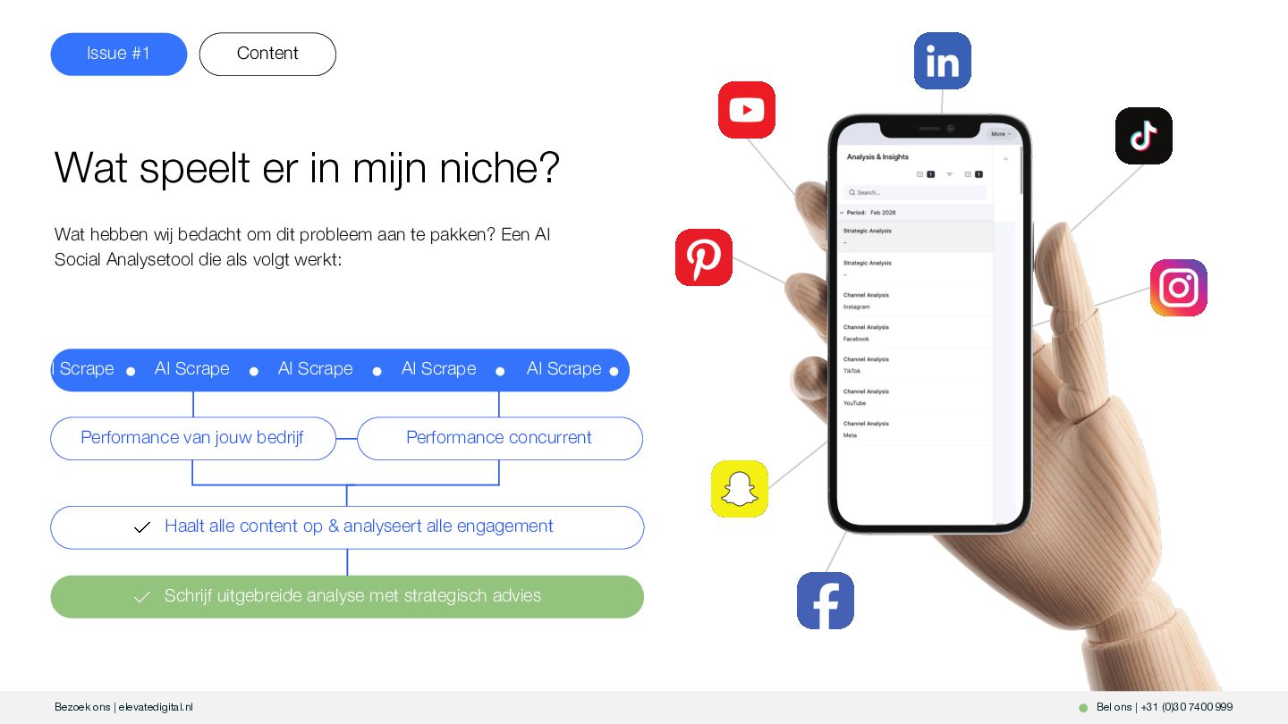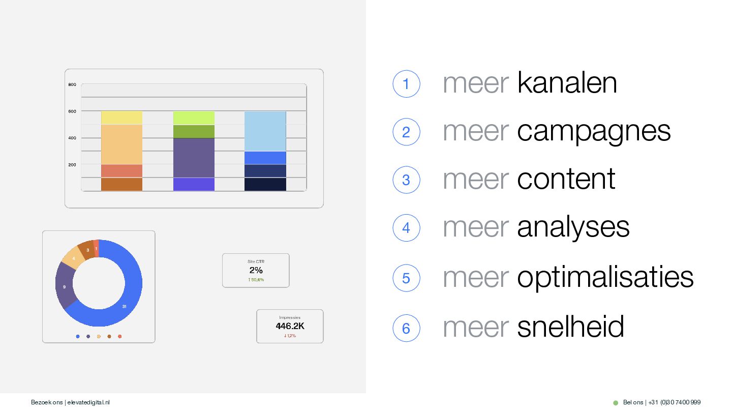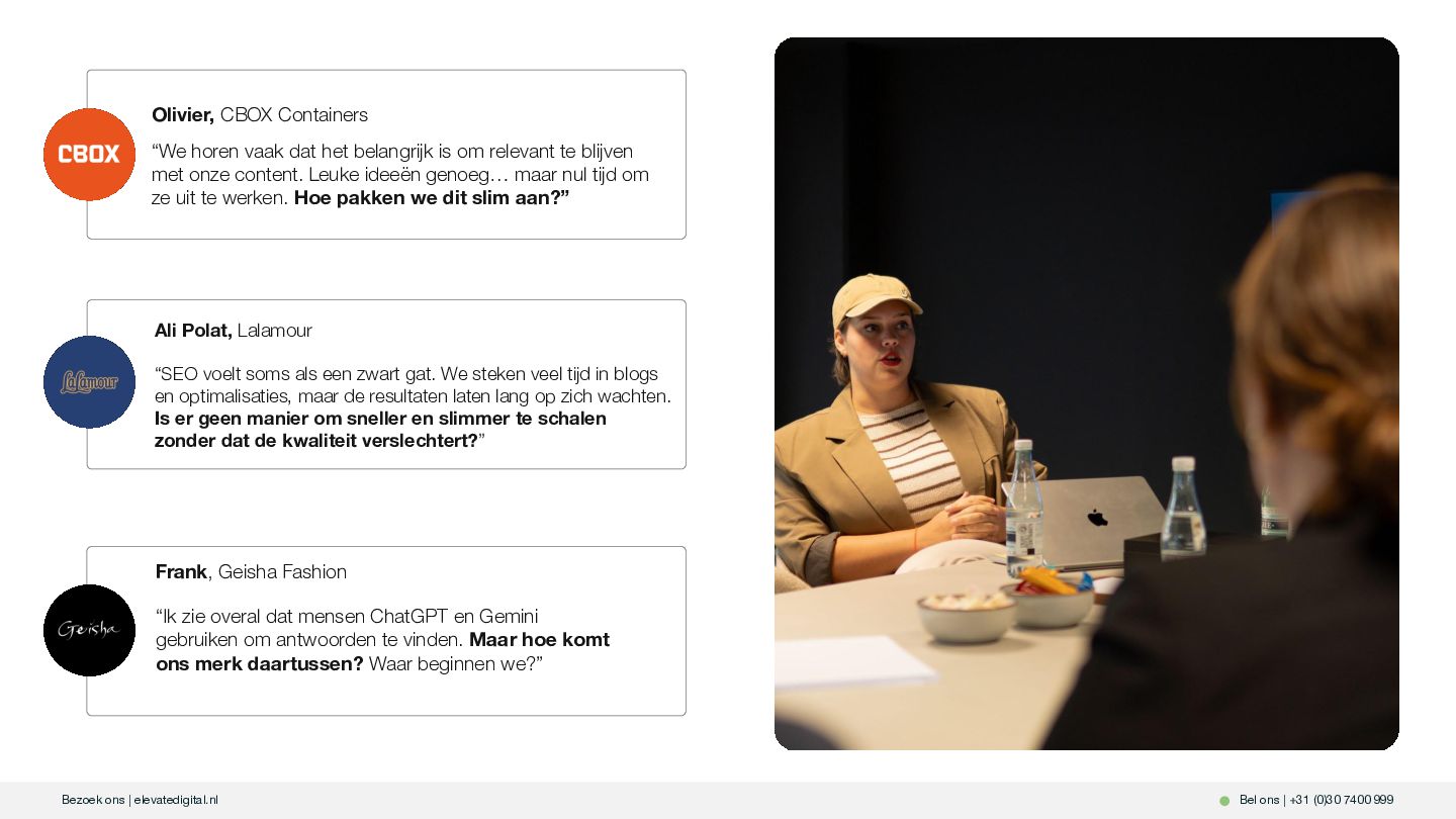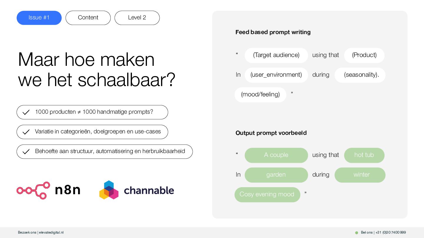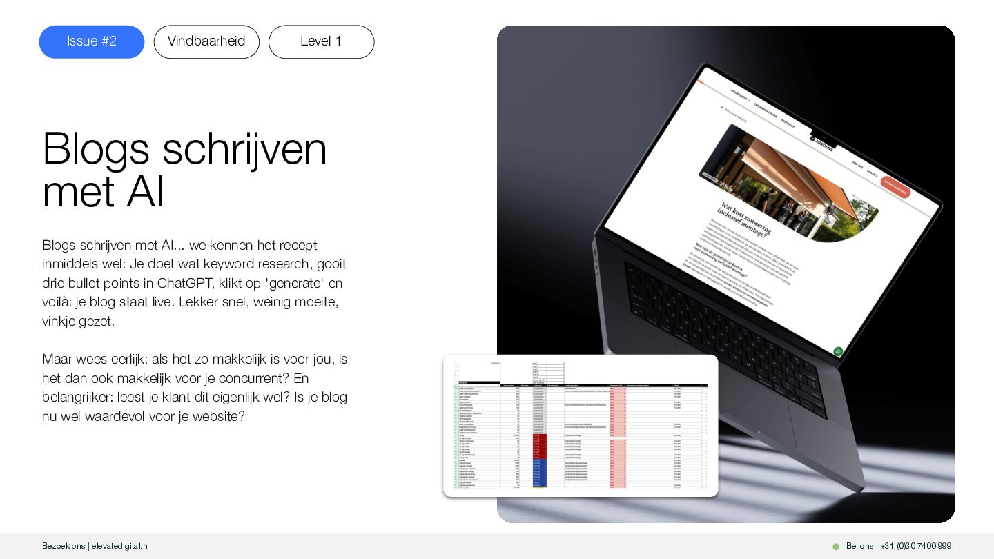 om hoger te scoren in de organische resultaten van zoekmachines zoals Google. Het doel is om meer gratis, relevante bezoekers naar je site te trekken door middel van content en techniek. Betekenis GEO Generative Engine Optimization is de nieuwe vorm van SEO, gericht op het zichtbaar worden in AI-gestuurde zoekmachines zoals Perplexity of Google’s AI Overviews. Hierbij draait het niet om blauwe linkjes, maar om geciteerd worden in de door AI gegenereerde antwoorden. Betekenis N8N N8N is een krachtige workflow-automatiseringstool waarmee je verschillende apps en databases aan elkaar kunt koppelen zonder diepgaande code. Het onderscheidt zich doordat je het op je eigen server kunt draaien, waardoor je volledige controle houdt. Betekenis LLM Large Language Model is een AI-model, zoals GPT-4, dat getraind is op gigantische hoeveelheden tekst om menselijke taal te begrijpen en te genereren. Deze modellen kunnen patronen herkennen om vragen te beantwoorden, teksten te schrijven. etc. Betekenis Bezoek ons | elevatedigital.nl Bel ons | +31 (0)30 7400 999