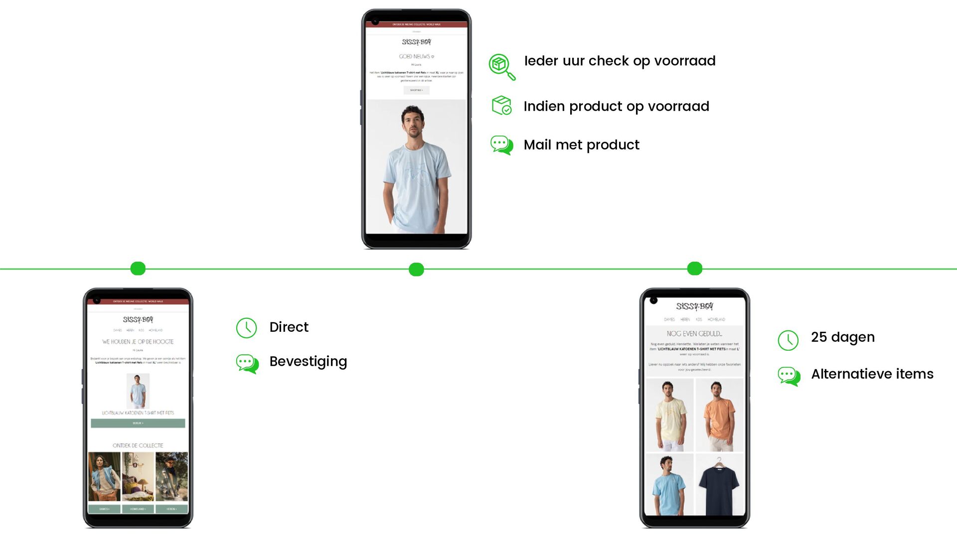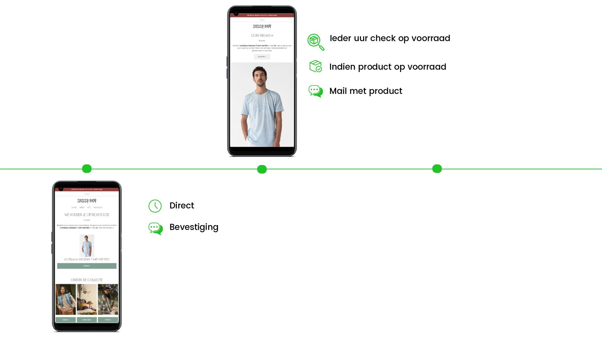 Ieder uur check op voorraad Indien product op voorraad Mail